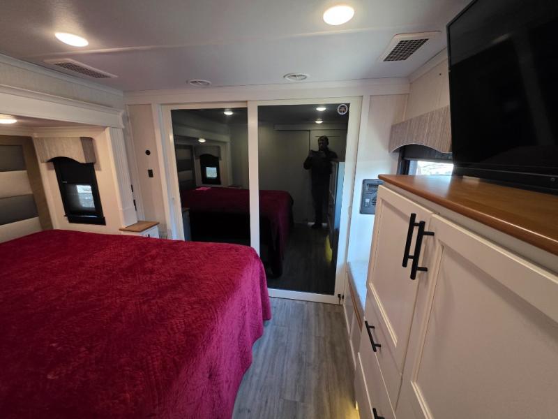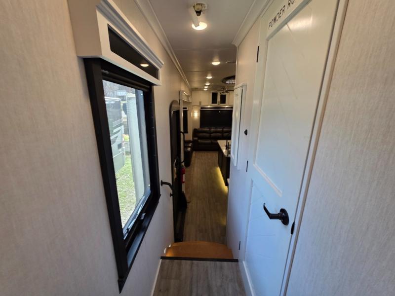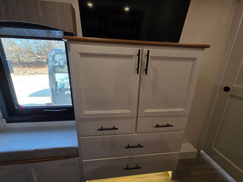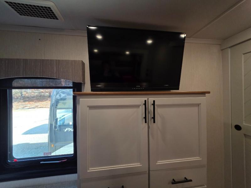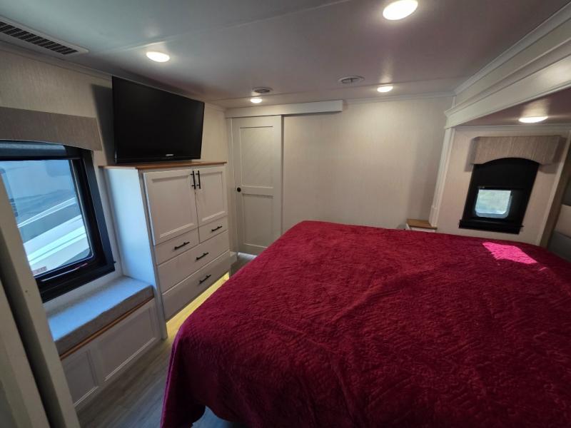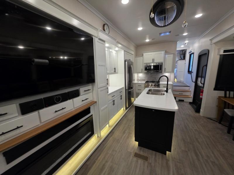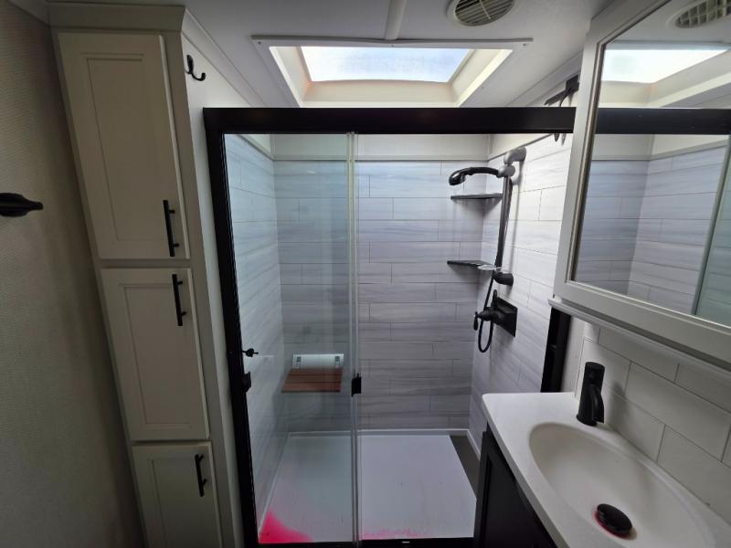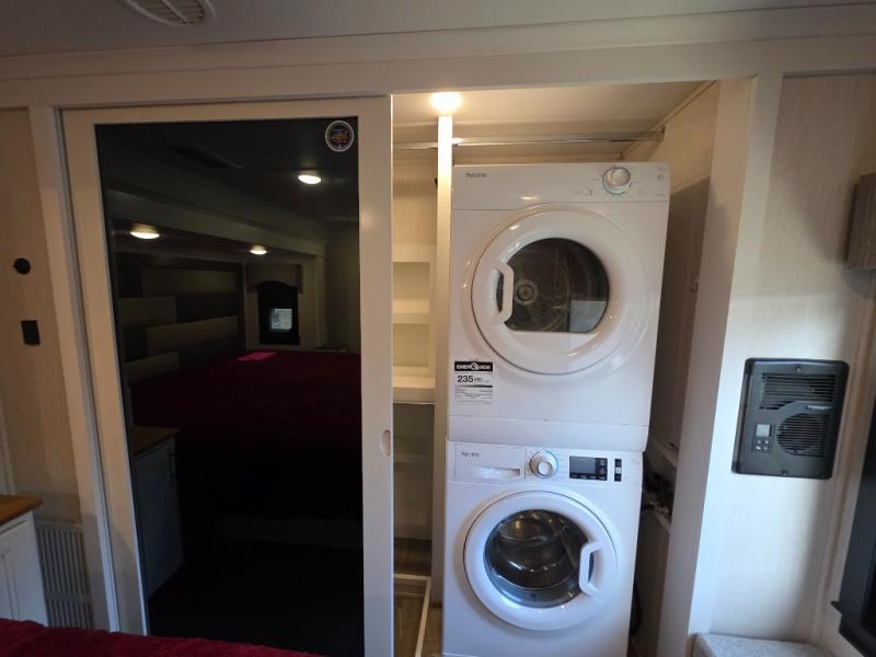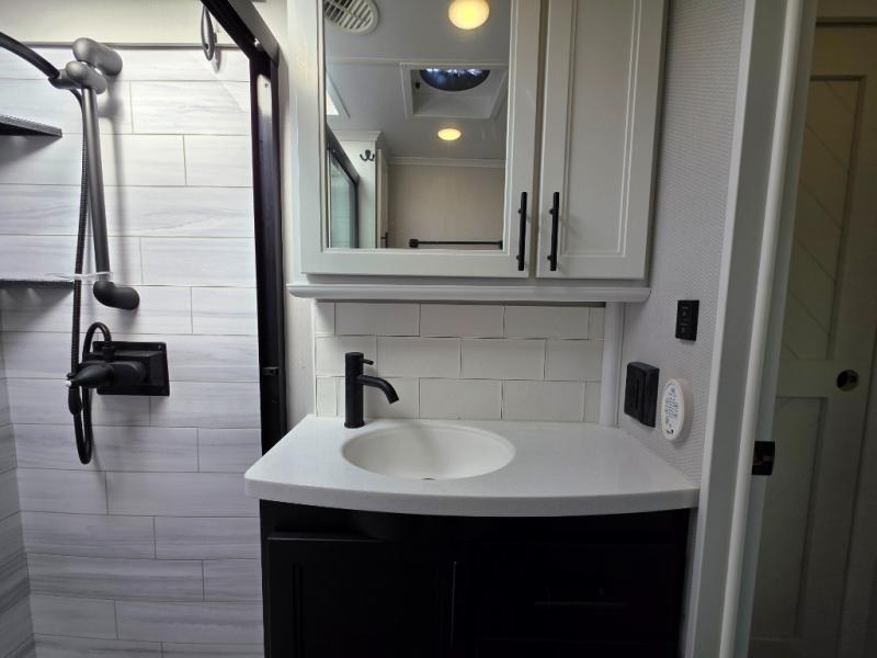 The Forest River RiverStone Reserve Series fifth wheel is an absolute dream! The construction is top notch with its wool-glass, residential-style insulation, 17.5" H-rated tires with aluminum rims, hydraulic slide outs, Dexter EZ Flex suspension system, painted full front fiberglass cap, and MORryde Step Above entry step. The RiverStone Reserve Series takes quality a step further by implementing a fully residential interior, the latest styles for interior design, and an excellent assortment of modern amenities. The central vacuum system is essential for keeping your unit clean while you are traveling, and the residential soft-close cabinet hinges are an added bonus that make your unit feel upscale. The 5,200 BTU fireplace is both functional and decorative, and the 190W solar panel, JBL Premium sound system, 1,000W inverter, and Firefly integrated touch control system are some of the great electronic features.