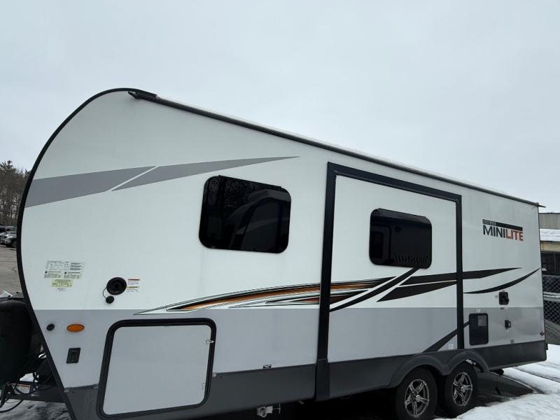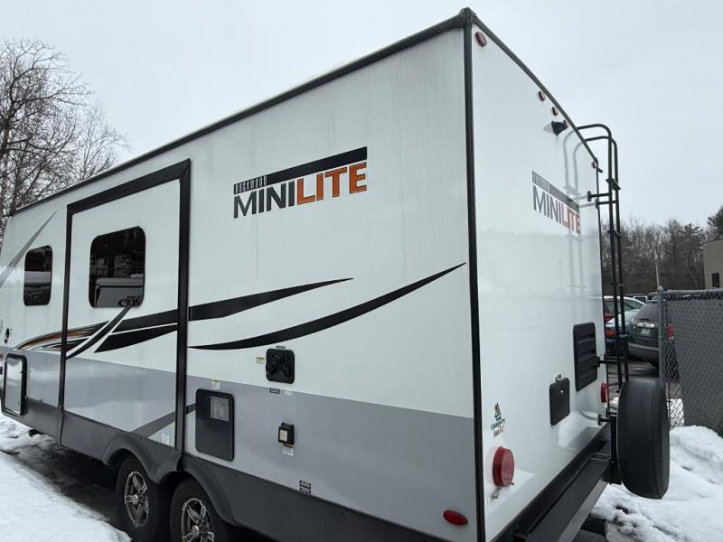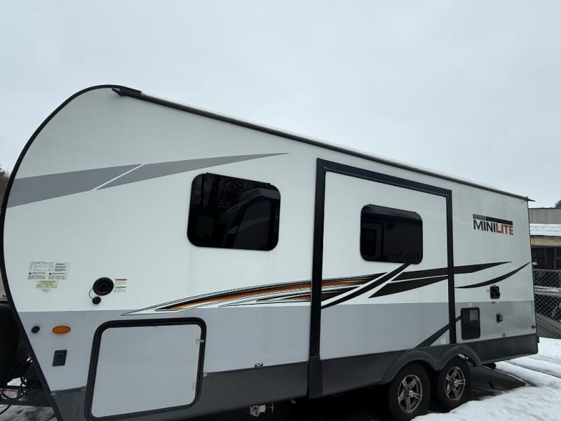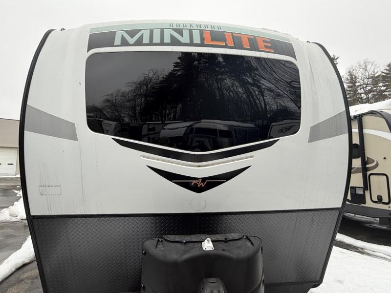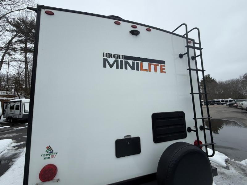 The easy-to-tow, lightweight Rockwood Mini Lite travel trailers by Forest River are the adventurer's dream come true. The six sided aluminum frame, fully laminated one-piece walkable roof, and painted fiberglass front cap with clear coat will provide a strong, durable unit that will last through years of memories and fun. You will appreciate many convenient features, such as the Maxxair fan with a cover, the back-up camera prep, and the Teton All In One WiFi booster with LTE prep and an antenna if you need to get some work done while you're away from home. Each model includes hardwood cabinet doors, a monitor panel switch with the OneControl app, and solid surface kitchen countertops. You will stay entertained on those rainy days with the multizone stereo with DVD, CD, AM/FM and Bluetooth control, and there are outdoor speakers so you will be the life of the campground. Choose your favorite Rockwood Mini Lite layout today!