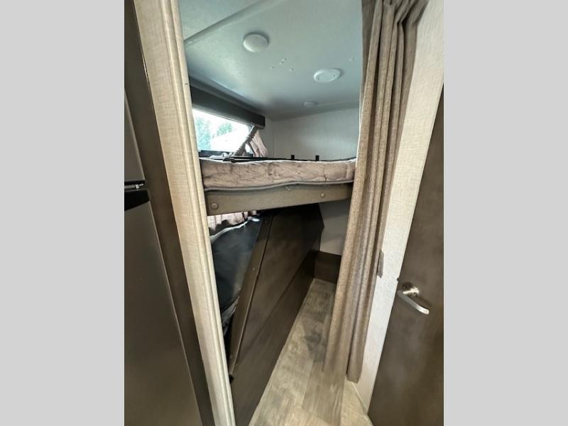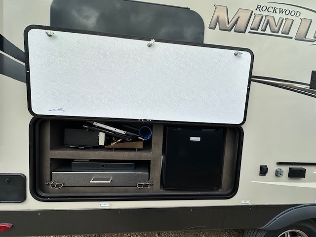 The easy-to-tow, lightweight Rockwood Mini Lite travel trailers by Forest River are the adventurer's dream come true. The six sided aluminum frame, fully laminated one-piece walkable roof, and painted fiberglass front cap with clear coat will provide a strong, durable unit that will last through years of memories and fun. You will appreciate many convenient features, such as the Maxxair fan with a cover, the back-up camera prep, and the Teton All In One WiFi booster with LTE prep and an antenna if you need to get some work done while you're away from home. Each model includes hardwood cabinet doors, a monitor panel switch with the OneControl app, and solid surface kitchen countertops. You will stay entertained on those rainy days with the multizone stereo with DVD, CD, AM/FM and Bluetooth control, and there are outdoor speakers so you will be the life of the campground. Choose your favorite Rockwood Mini Lite layout today!