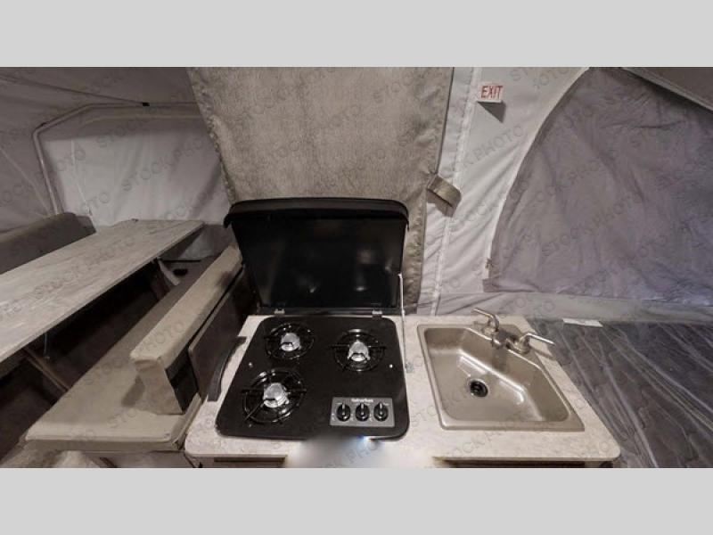 You won't have to worry about length restrictions or cumbersome towing because this Rockwood Freedom Series folding pop-up camper provides you with a lightweight and flexible alternative to heavy RVs! This camper has a single slide built into it which will deliver extra space to the interior without adding to the overall width while traveling, and the booth dinette is a functional piece of furniture that can serve as a dining table and a bed. The interior cabinets will provide you with space to store your belongings while you travel, and the outdoor griddle will make it easy to prepare your meals outside around all of the action. You can even choose to add the optional shower/port-a-pottie to make this unit even more convenient.
