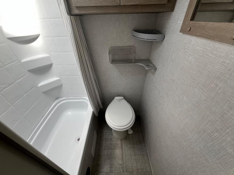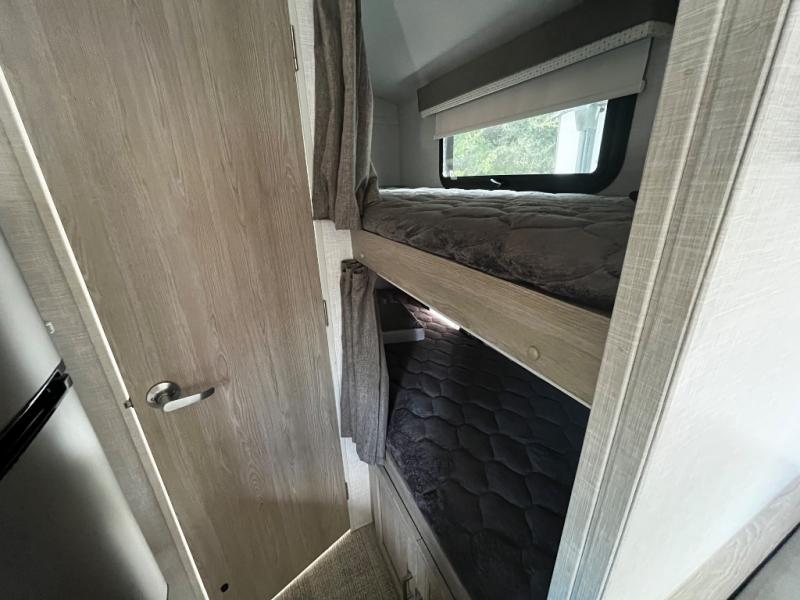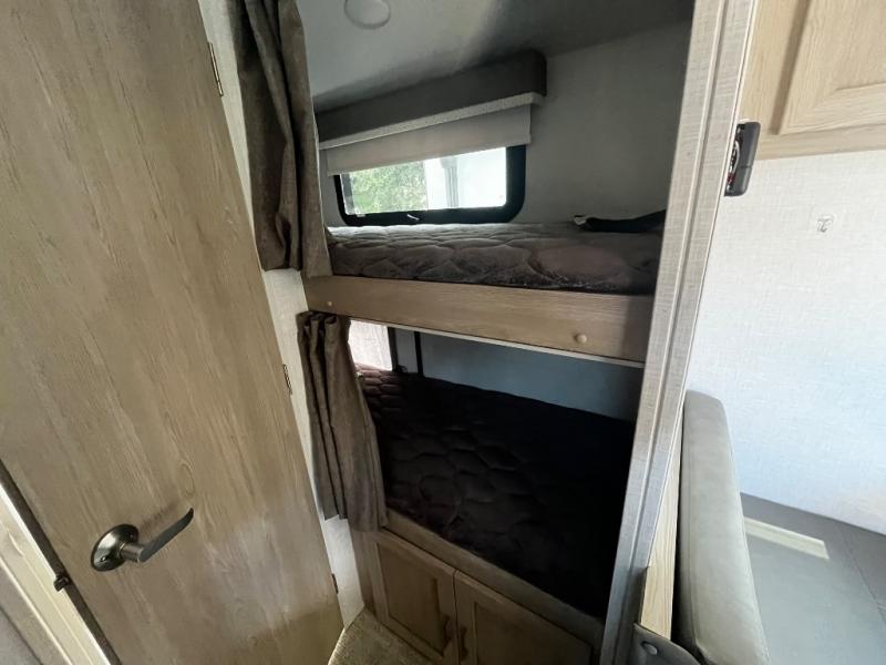 You and the kids will love camping in this travel trailer! It features a set of bunk beds with the bottom bunk being able to fold up. The rear corner bathroom has everything you will need to freshen up each morning. Grab some eggs and bacon from the gas/electric refrigerator, fry them up on the three burner cooktop, and enjoy them at the 32" dinette. Along the exterior is a front storage area, a ladder, a bike door to store the kids' bikes or other essentials, and a 13' power awning to protect you whether rain or shine!