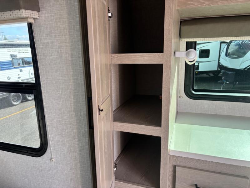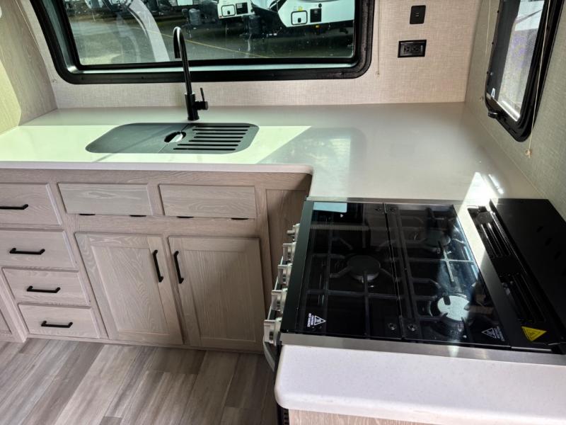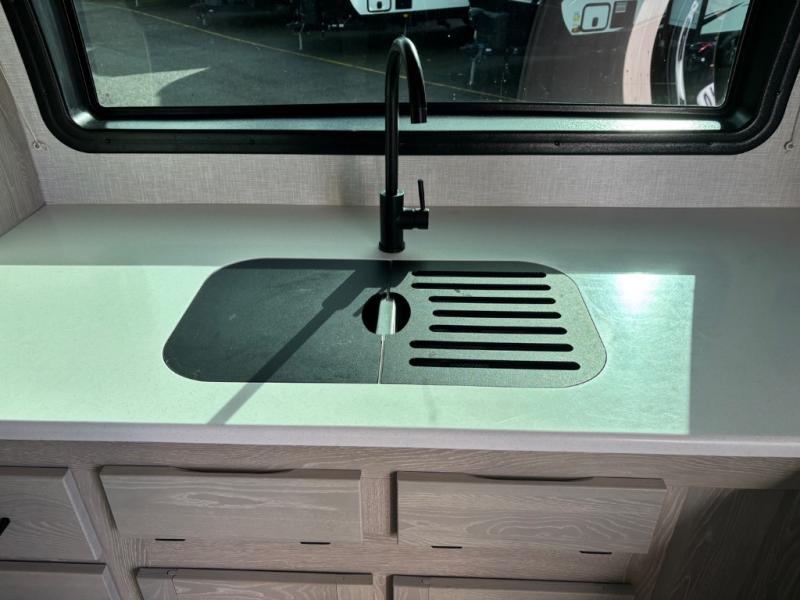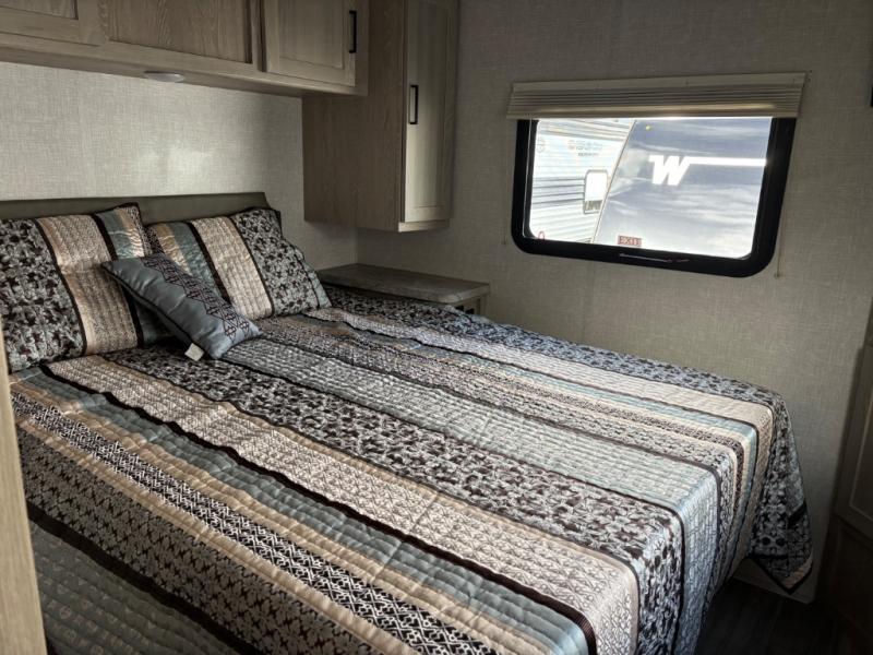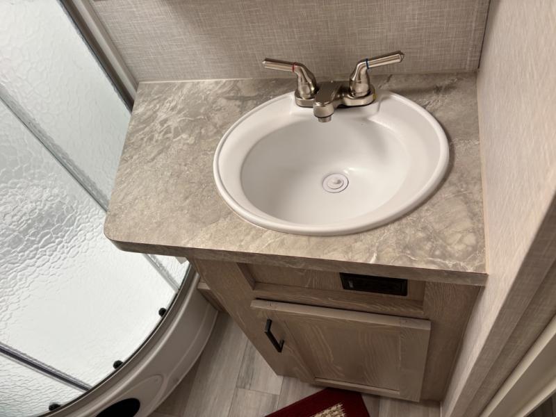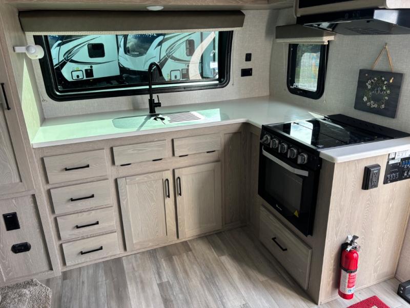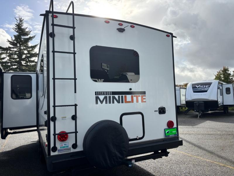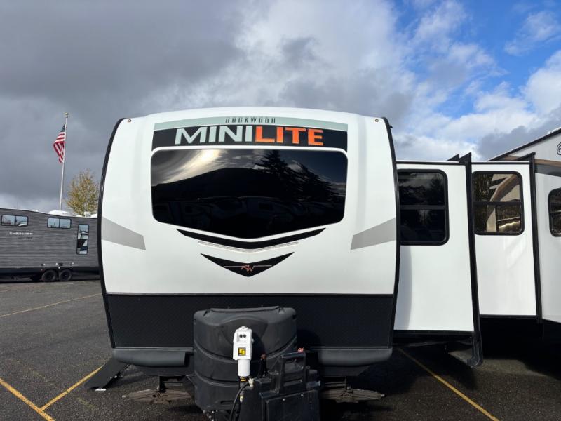 Each Rockwood Mini Lite travel trailer by Forest River is constructed with a fully laminated one-piece walkable roof, sleek frameless windows, and a six-sided full aluminum frame for strength and durability. The 12V thermostatically controlled heated tanks, plus radiant foil in the underbelly and slide out floors will allow you to camp well into the colder months, and the 200W roof solar panel will be perfect for a little off-gridding. Each model includes solid surface kitchen countertops, solid wood cabinet doors, night roller shades, plus many more interior features. Having an AIR 360+ omnidirectional antenna with WiFi prep on board gives you the option to get some work done if it's needed, and the power tongue jack provides hassle-free set up, so you can enjoy more time relaxing!