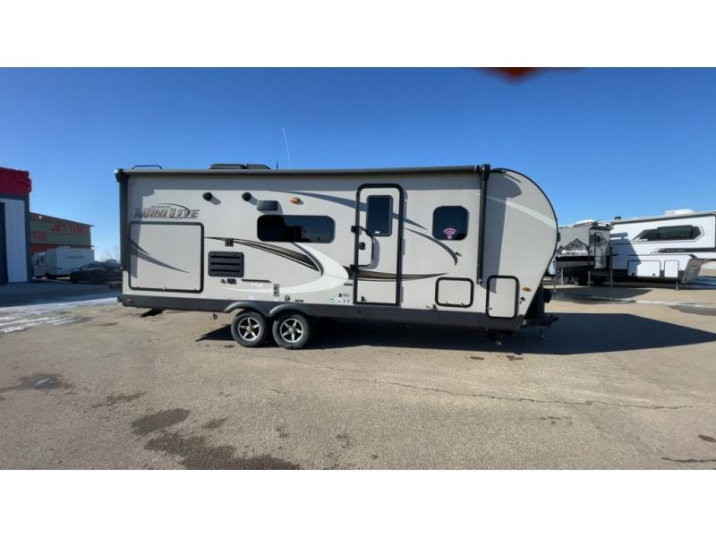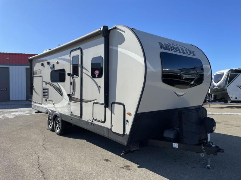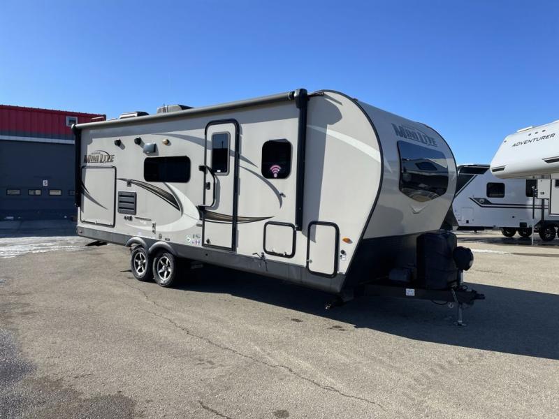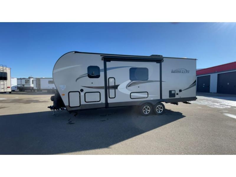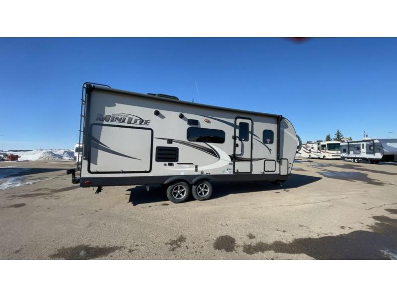 The easy-to-tow, lightweight Rockwood Mini Lite travel trailers by Forest River are the adventurer's dream come true. The six sided aluminum frame, fully laminated one-piece walkable roof, and painted fiberglass front cap with clear coat will provide a strong, durable unit that will last through years of memories and fun. You will appreciate many convenient features, such as the Maxxair fan with a cover, the back-up camera prep, and the Teton All In One WiFi booster with LTE prep and an antenna if you need to get some work done while you're away from home. Each model includes hardwood cabinet doors, a monitor panel switch with the OneControl app, and solid surface kitchen countertops. You will stay entertained on those rainy days with the multizone stereo with DVD, CD, AM/FM and Bluetooth control, and there are outdoor speakers so you will be the life of the campground. Choose your favorite Rockwood Mini Lite layout today!