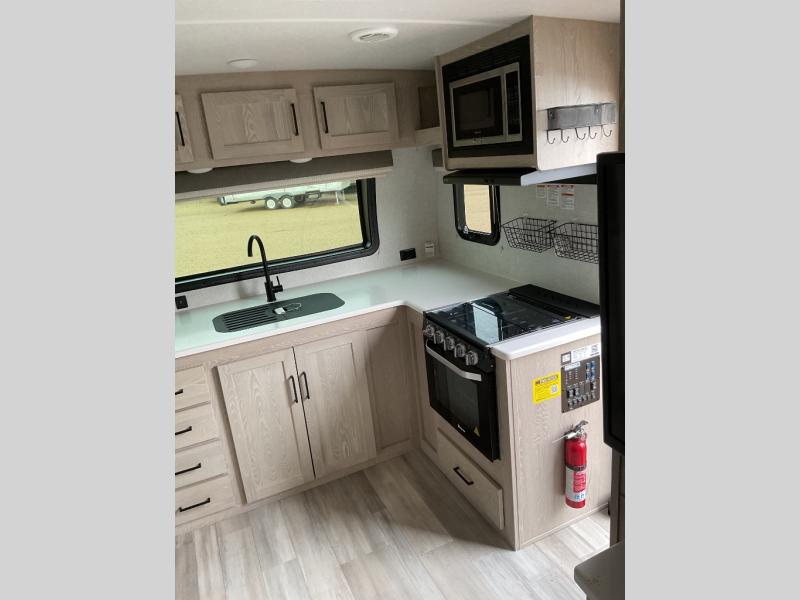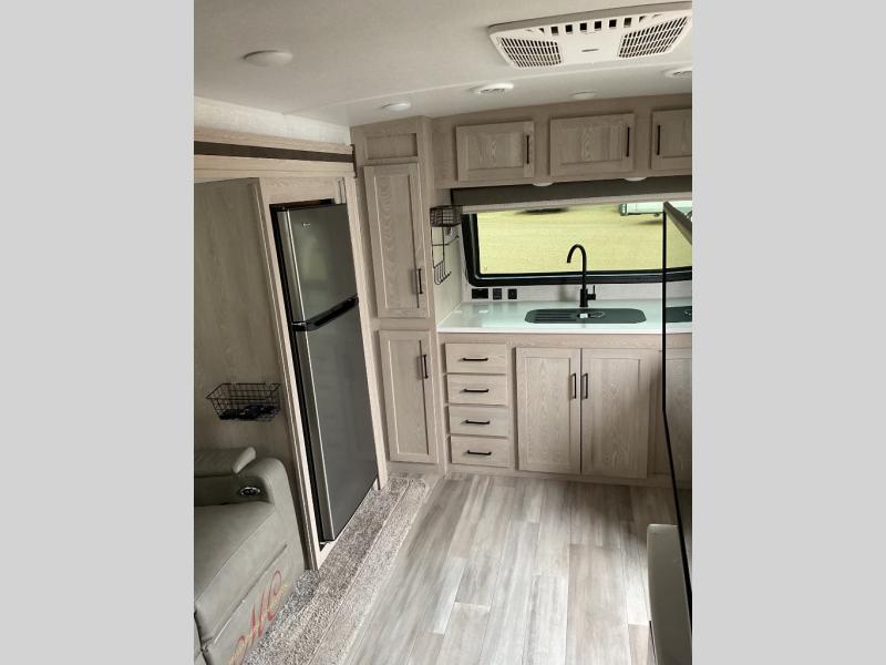 The easy-to-tow, lightweight Rockwood Mini Lite travel trailers by Forest River are the adventurer's dream come true. The six sided aluminum frame, fully laminated one-piece walkable roof, and painted fiberglass front cap with clear coat will provide a strong, durable unit that will last through years of memories and fun. You will appreciate many convenient features, such as the Maxxair fan with a cover, the back-up camera prep, and the Teton All In One WiFi booster with LTE prep and an antenna if you need to get some work done while you're away from home. Each model includes hardwood cabinet doors, a monitor panel switch with the OneControl app, and solid surface kitchen countertops. You will stay entertained on those rainy days with the multizone stereo with DVD, CD, AM/FM and Bluetooth control, and there are outdoor speakers so you will be the life of the campground. Choose your favorite Rockwood Mini Lite layout today!