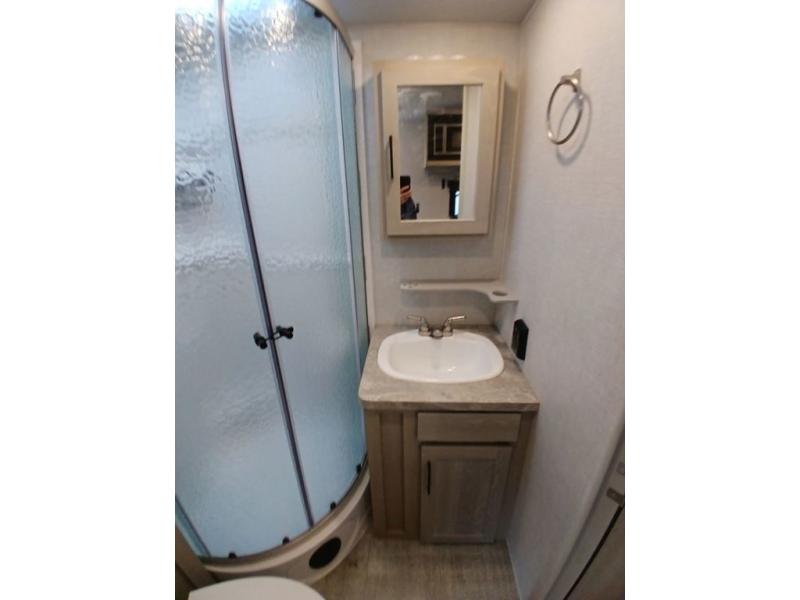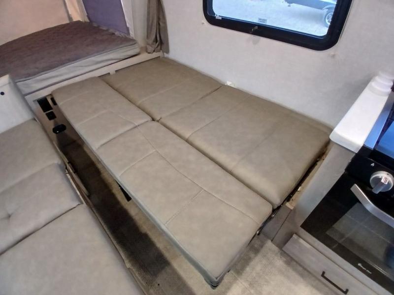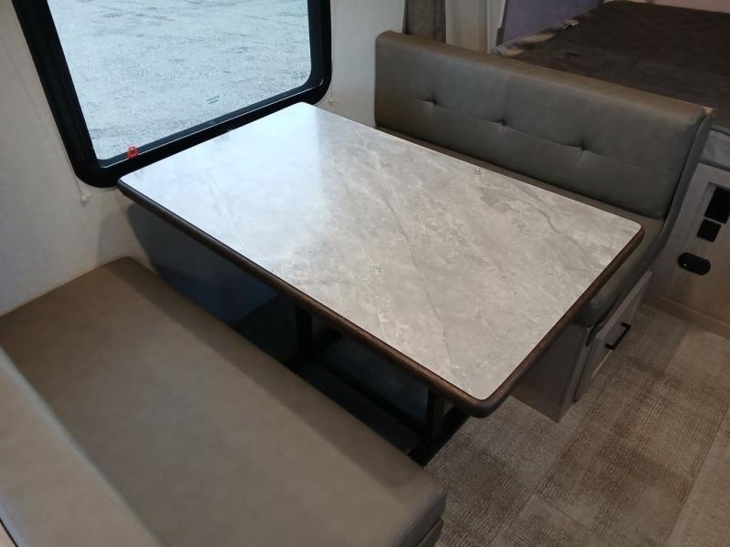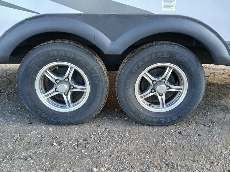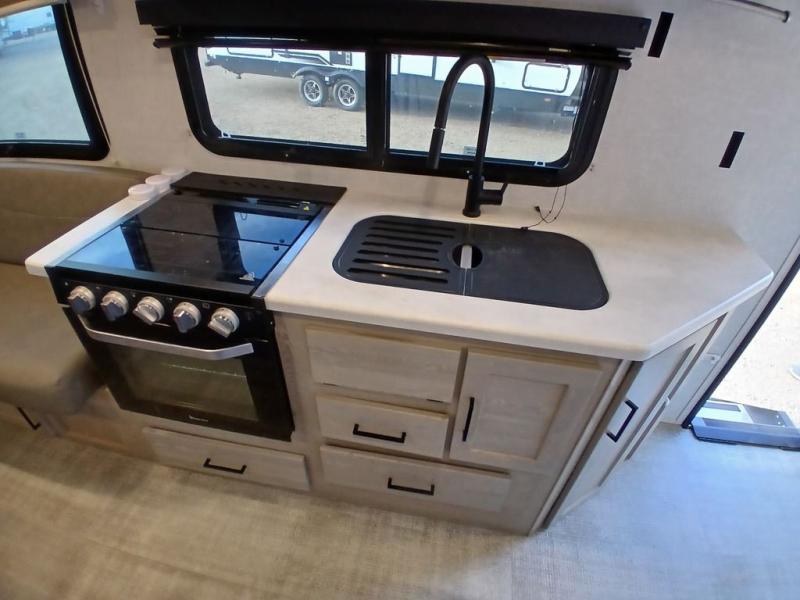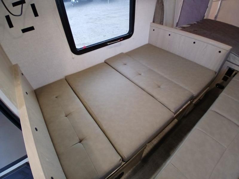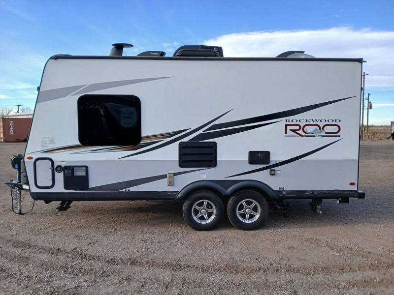With any Rockwood Roo expandable travel trailer by Forest River you will enjoy smooth towing thanks to the torsion axle, Rubber-Ryde suspension, the easy lube axles and Nev-R-Adjust brakes, and the Goodyear Endurance tires. The key-Alike locks provide easy access in and out of your trailer, and each model includes a Teton all-in-one WiFi booster with LTE prep and an antenna for all your connection needs. Each model is constructed with a vacuum laminated one-piece roof and walls, an enclosed underbelly, and frameless windows for a more sleek look. You will enjoy many interior comforts, including hardwood cabinet doors and drawer fronts, pleated night shades, a bunk/fan light combo with each bed, and much more!