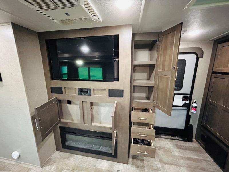 Comfortable, lightweight, fun, and accommodating are just a few of the words that you could use to describe the Forest River Rockwood Ultra Lite fifth wheel and travel trailer! Some of the other words you could use are stylish and dependable. The thermostatically controlled heated holding tanks and enclosed underbelly will keep your unit protected from the cold, and the six-sided aluminum cage construction and surface-coated steel I-beam frame deliver a strong base for everything to be built upon. Radius roofs with interior vaulted ceilings provide an open environment, and the exterior also has an outside shower and speakers for extra convenience.