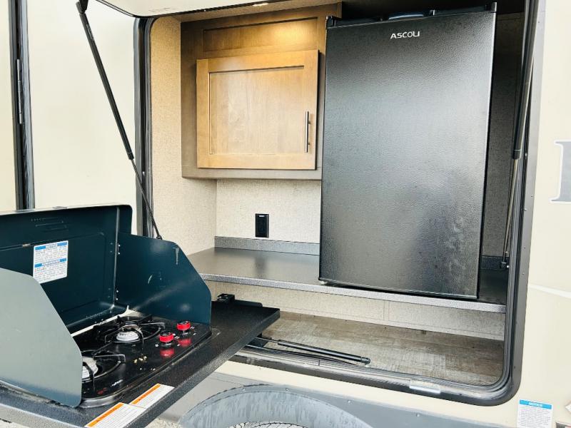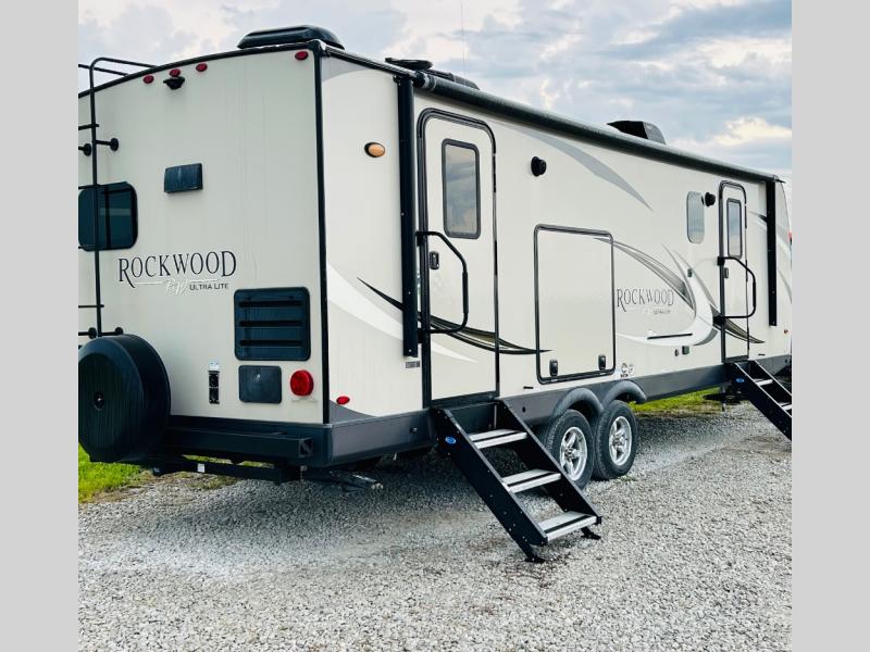 Take your camping game to the next level with this Rockwood Ultra Lite travel trailer! With two slides and two entry doors, this unit provides you with convenience and accessibility. Plus, before you even enter this model, you will notice its provision of an outdoor kitchen and exterior storage compartments. The large bedroom up front is also a wonderful addition because it will allow you to move around easily while you get dressed in the morning.