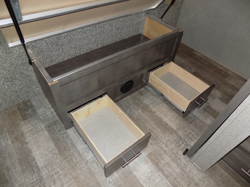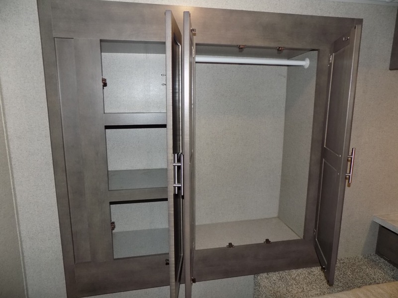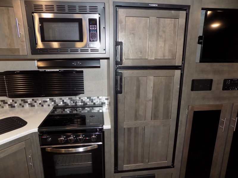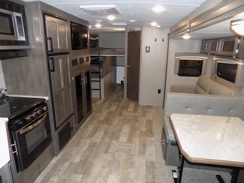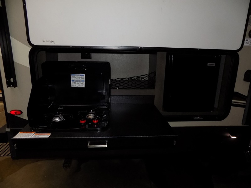 Imagine your whole family camping at the state park with plenty of sleeping space for ten when you utilize the furniture in this Rockwood Ultra Lite travel trailer. The kids get the double-size bunks at night, and you will have your own walk-around queen bed and privacy in the front bedroom. There is a wardrobe slide giving you more storage and floor space, nightstands, and the second entry into the trailer for a smooth flow of traffic. The drop-frame pass-through storage will give you even more space to take the fishing poles, marshmallow sticks, and charcoal. The cook will have full amenities to make warm meals, a walk-in pantry to stow lots of snacks and dry goods, a double-door refrigerator, and a countertop extension. And the outside kitchen has a gas griddle to give more choices when cooking.