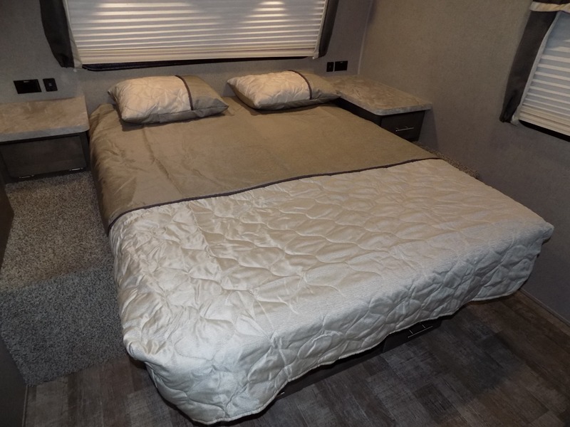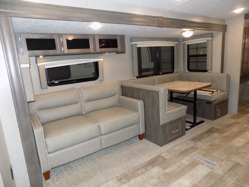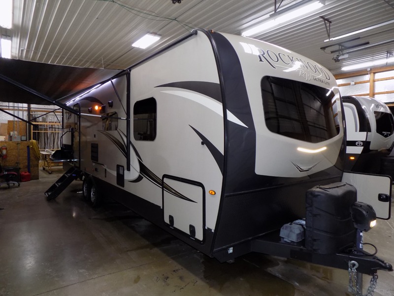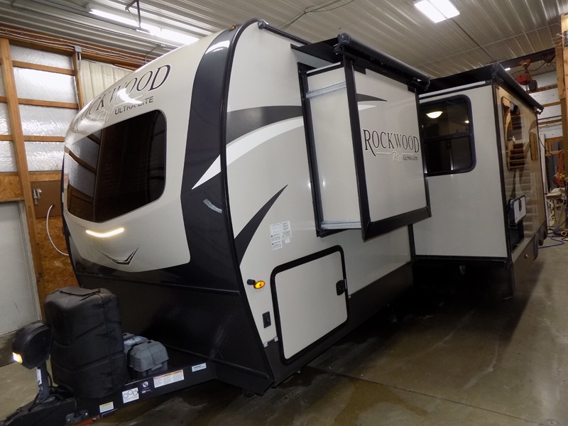 Comfortable, lightweight, fun, and accommodating are just a few of the words that you could use to describe the Forest River Rockwood Ultra Lite fifth wheel and travel trailer! Some of the other words you could use are stylish and dependable. The thermostatically controlled heated holding tanks and enclosed underbelly will keep your unit protected from the cold, and the six-sided aluminum cage construction and surface-coated steel I-beam frame deliver a strong base for everything to be built upon. Radius roofs with interior vaulted ceilings provide an open environment, and the exterior also has an outside shower and speakers for extra convenience.