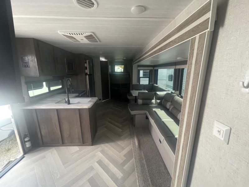 As you get away for the weekend to enjoy nature's beauty, you'll be so glad that you chose to bring this Salem travel trailer along! The full kitchen with its three-burner cooktop and walk-in pantry will allow you to prep meals whenever it is convenient for you, and the large slide that contains the extremely functional Versa Lounge will deliver extra space to the interior so that you don't feel cramped. Your kids will be able to invite a friend or two because of the double-size bunks that are in the back, and since these bunks are right next to the full bathroom with a walk-in shower, your kids won't have to search far in the middle of the night.
