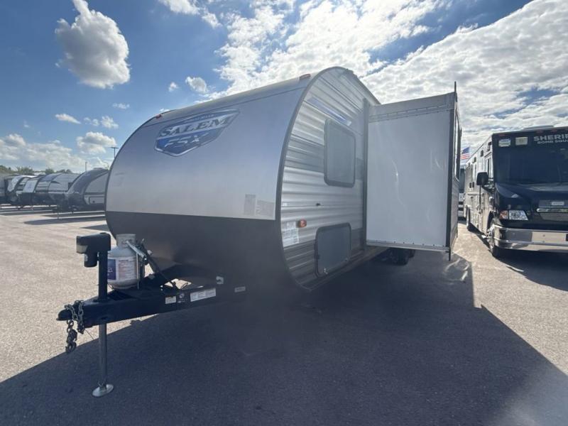 You will experience an easy-to-tow, lightweight, fully featured toy hauler or travel trailer with a Forest River Salem FSX! Each model is perfect for a first-time camper or an experienced one, and they offer a modern residential living space for a home-away-from-home experience. The Tuffcoat scratch-resistant exterior paint and diamond plate front rock guard will not only turn heads down the road, but also protect your unit for years to come. New to 2021 is Herringbone ultra-durable Congoleum floors that are easy to clean, AccessiBelly enclosed underbelly panels to better protect your unit from the elements, an additional 5.5 sq. ft. of countertop space, and a dual group 24 battery tray. Come see what model suits you best today!