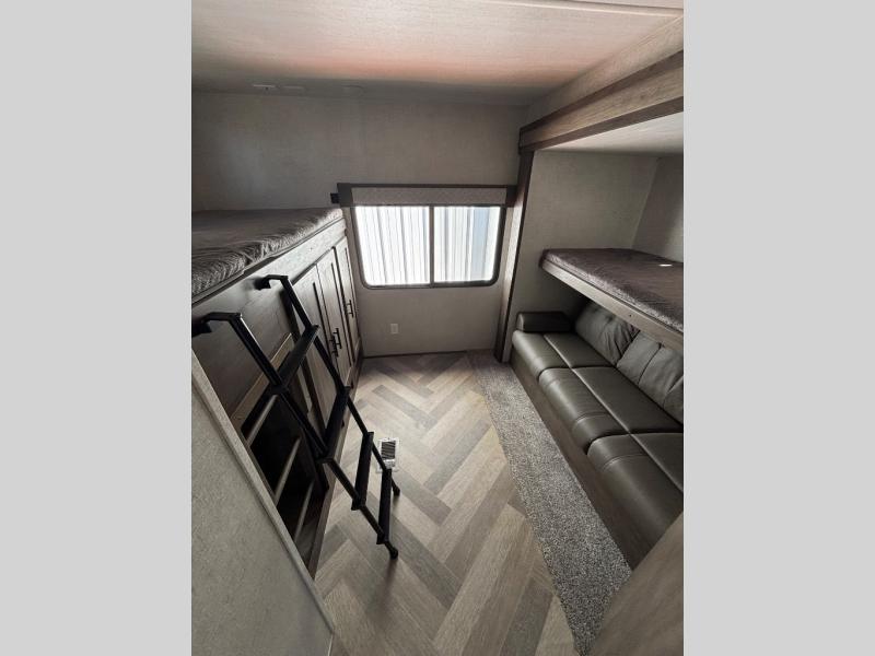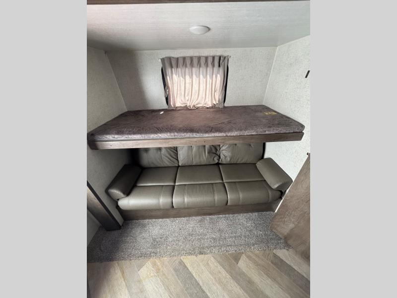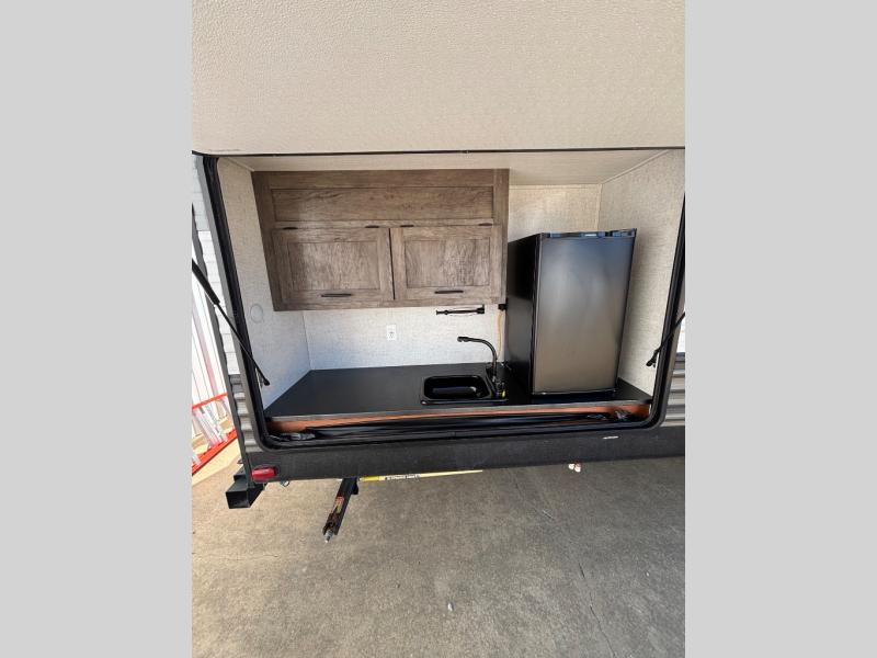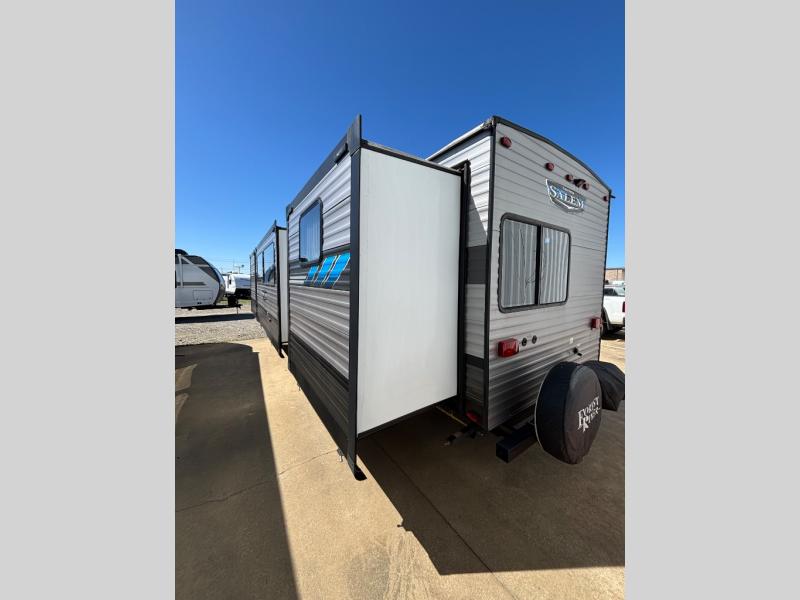 Do you need a break from the mundane camping life? If so, it's time to check out this exciting and full-featured Salem travel trailer! This unit provides two separated sleeping spaces, a rear private bunkhouse and a front private bedroom. Another feature that is just as helpful as the one in your own home is the kitchen. With an 11 cu. ft. frost free refrigerator, a three burner cooktop, a double sink, and abundant cabinet storage, you will be able to create delicious meals for the entire family. Plus, if you prefer to have a sunrise breakfast, you can simply take your preparations outside to the outdoor kitchen!