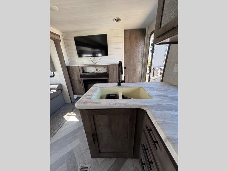 Enjoy years and years of memories with any one of these Forest River Salem travel trailers! They are built with a one piece, SuperFlex roof that is fully walkable, a powder coated I-beam frame, and an aerodynamic front radius profile for an easier tow. The triple seal slide out system prevents water from seeping inside and keeps it outside where it belongs. New to 2021 is an outside kitchen re-design with Stow N Go containers, a flush mount water heater cover, and a high gloss exterior metal. There is also interior decor changes like the upgraded designer furniture, the stretched hex backsplash with a concrete seal in the kitchen, and the new dinette base vinyl color. Come see all of the other new features today!