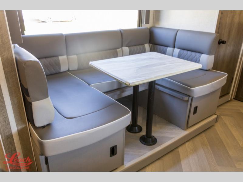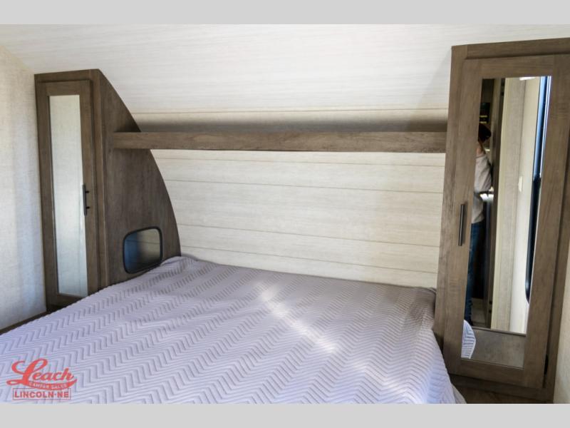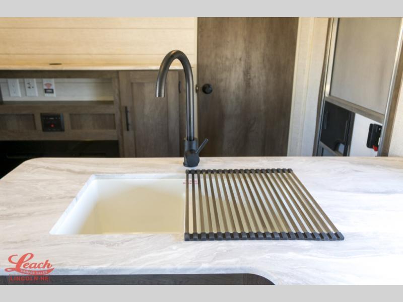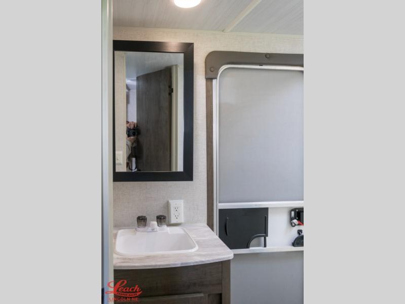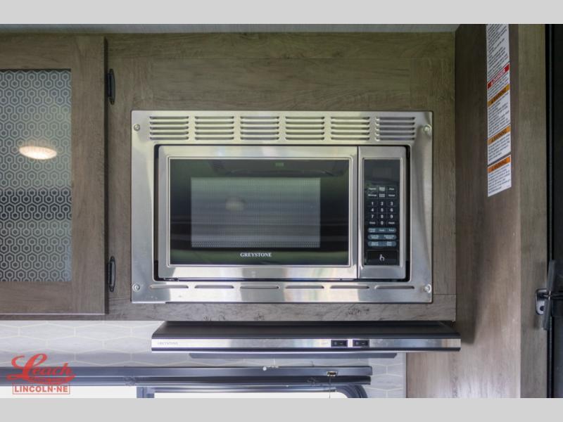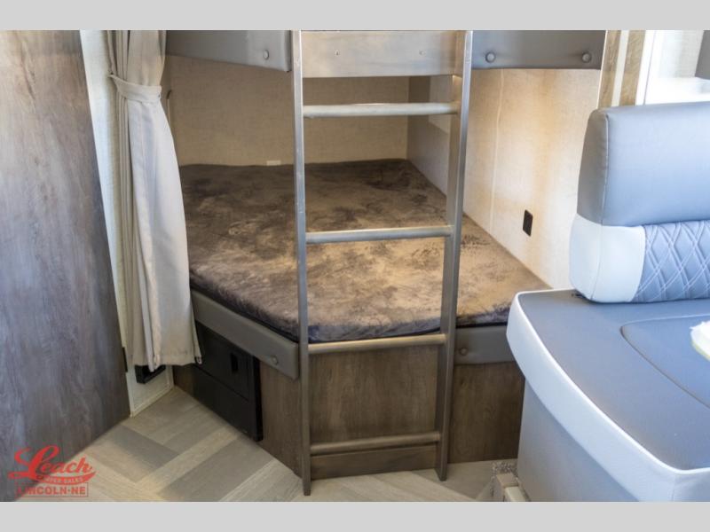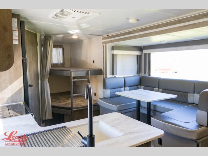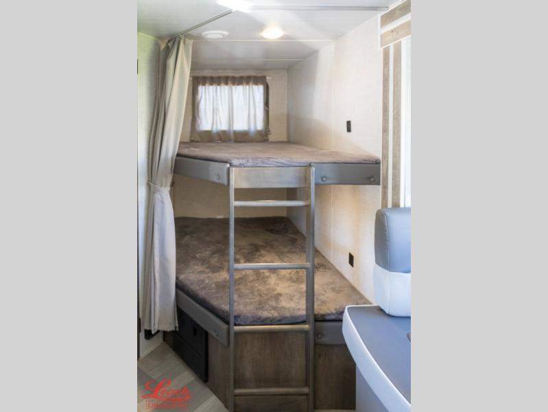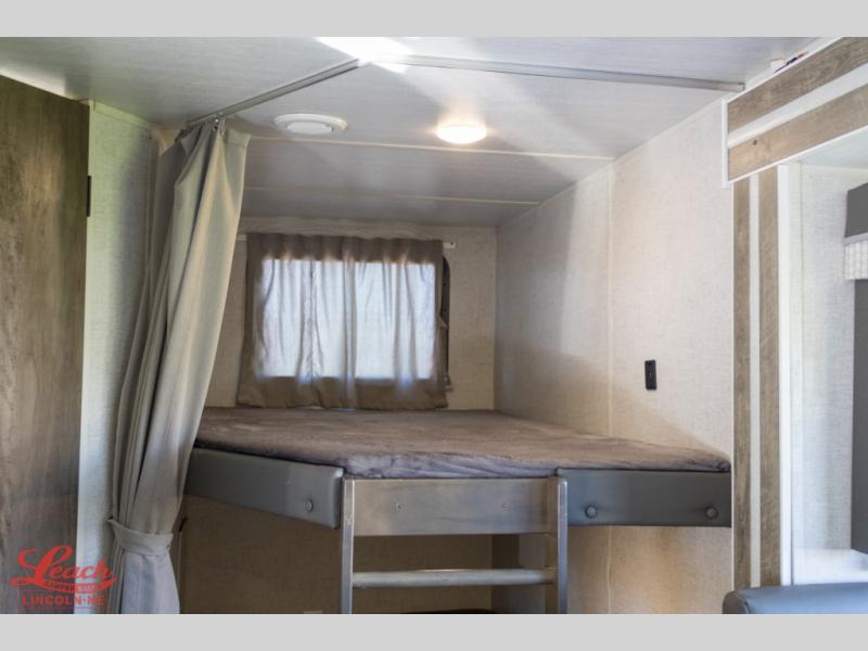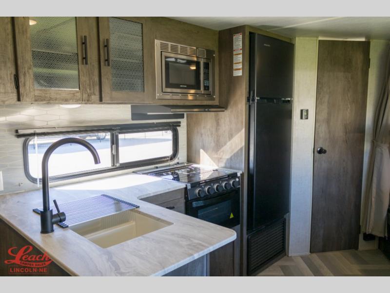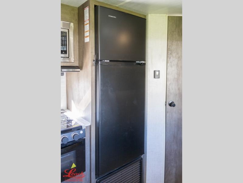 This travel trailer is big enough for the whole family to join in on the fun! The kiddos can sleep on the rear corner bunk beds, and you can sleep on the queen bed inside the front private bedroom, plus the U-shaped dinette can transform into an extra sleeping space. The rear corner bathroom has everything you will need to get squeaky clean each morning, as well as an exit/entrance door to the unit. The stainless steel 10.7 cu. ft. refrigerator will keep your perishables fresh and the three burner cooktop is just waiting for you to create a delicious meal!