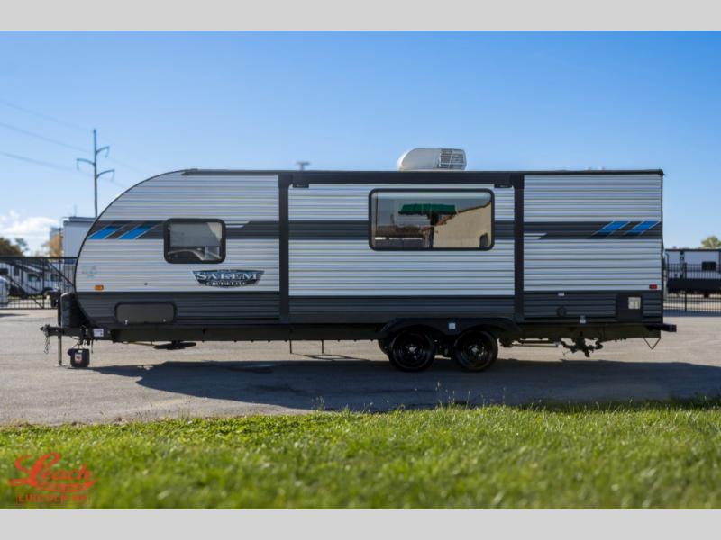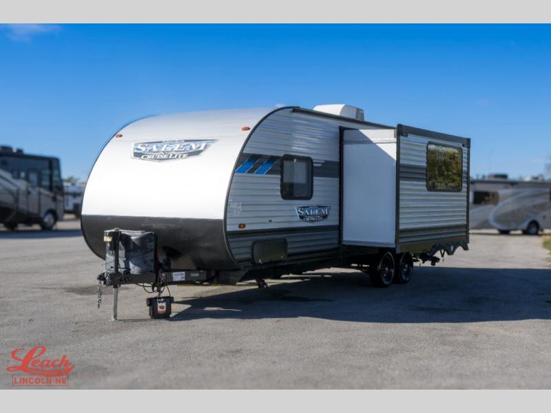 Each one of these Forest River Salem Cruise Lite travel trailers offer quality and value with a list of great features! Each model comes with the Best in Class Value package which includes an upgraded appliance package, true stabilizer jacks with JT StrongArms, USB port package, and Stow N Go storage below the bed and dinette. The modern cloth roller shades come with AutoStop, and the SolidStep double step ensures you will safely enter the unit. You will enjoy looking out at your beautiful scenery each morning through the extra large panoramic window on the main slide. Check out a model in person today!