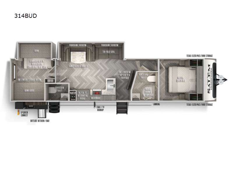 Forest River Salem Hemisphere travel trailer 314BUD highlights:
