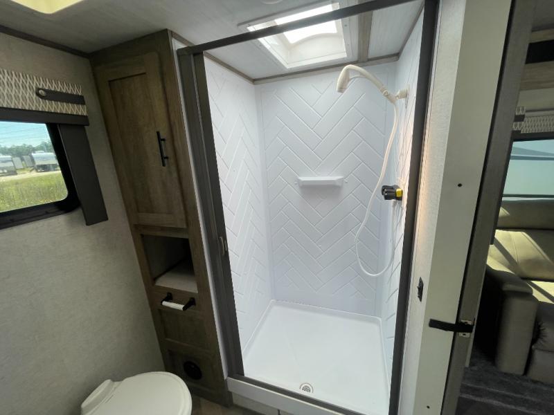You will experience better gas mileage and a smoother ride with any one of these Forest River Salem Hemisphere Hyper-Lyte travel trailers! The stunning interiors include Herringbone designer's choice congoleum flooring for an easy clean up, rich wood tones with the Hudson wood agreeable grain cabinetry, and yacht trim ceiling finishes. With a high efficiency A/C cooling system, you can be sure to stay cool even on the hottest summer day. The mandatory Upgraded Options package includes an outside shower to rinse the mud off before entering, a central switch center, and an ivory performance colored exterior fiberglass with smoked quartz metallic accents to turn heads while at the campsite!