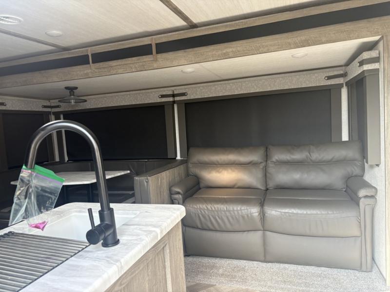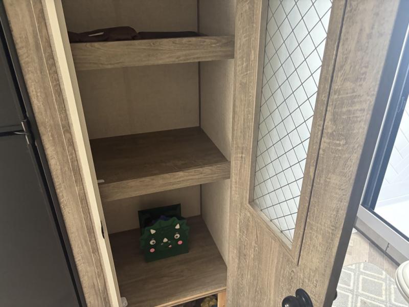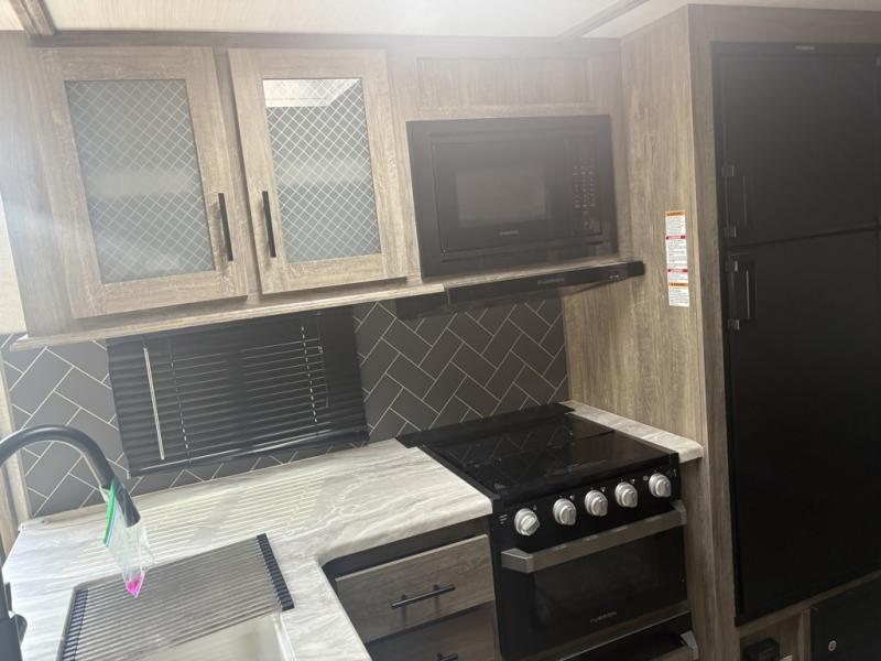 This Salem Hemisphere Hyper-Lyte travel trailer has it all: two entry doors, a private bedroom for you, double-size bunks for the kids or your friends, plus a large slide out for more interior space! After you've explored for the day, come back to this trailer to prepare dinner on the three-burner range or in the microwave. The rear corner bath includes a walk-in shower with skylight and it's own exterior entry door, so you can easily use the restroom and get back outside without going through the whole trailer. And the exterior offers a Texas-size pass-through storage, a 16' awning, and an outside kitchen/bar to enjoy outdoors.