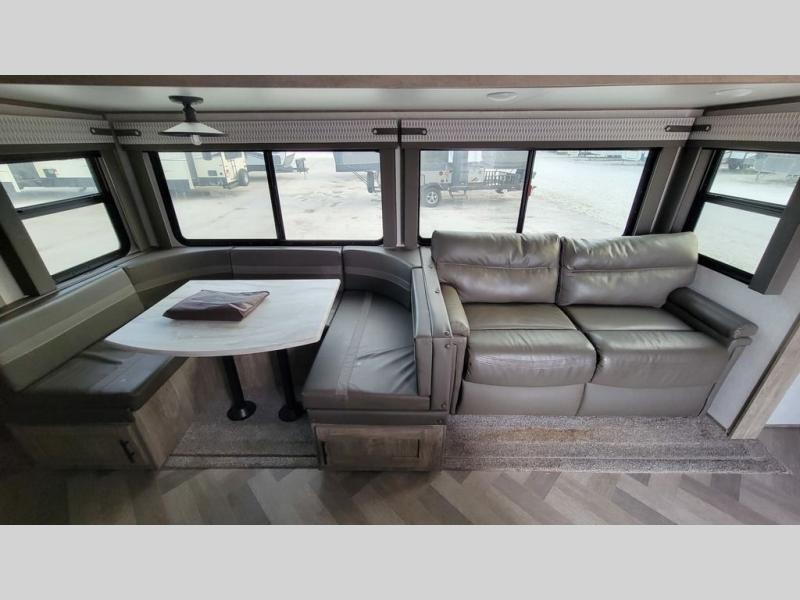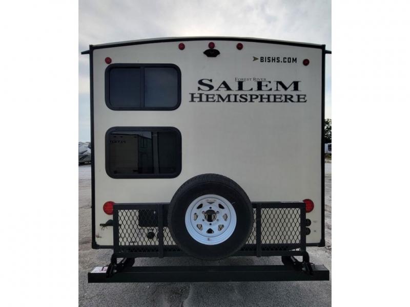 You will experience better gas mileage and a smoother ride with any one of these Forest River Salem Hemisphere Hyper-Lyte travel trailers! The stunning interiors include Herringbone designer's choice congoleum flooring for an easy clean up, rich wood tones with the Hudson wood agreeable grain cabinetry, and yacht trim ceiling finishes. With a high efficiency A/C cooling system, you can be sure to stay cool even on the hottest summer day. The mandatory Upgraded Options package includes an outside shower to rinse the mud off before entering, a central switch center, and an ivory performance colored exterior fiberglass with smoked quartz metallic accents to turn heads while at the campsite!