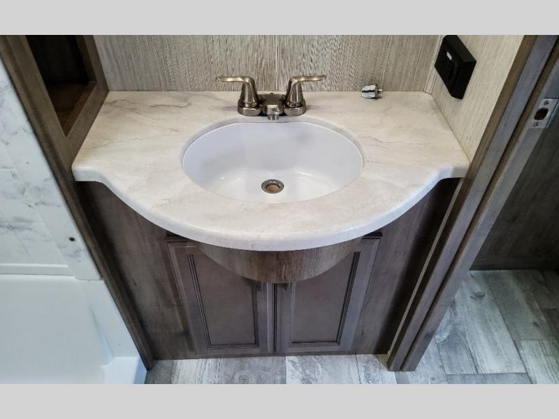 The professional details, outstanding quality, and elegant decor that have been incorporated into each of the Sandpiper fifth wheels by Forest River will absolutely amaze you! Extra large picture windows have been installed throughout the interior so that you can feel connected to the beautiful outdoor scenery from anywhere inside the Sandpiper, and the recessed residential LED lighting will shine brightly and efficiently to illuminate the interior once the day's light has faded. The docking station makes for an easy winterization and the hydraulic front jacks makes it easy to set up once you have arrived at your destination!