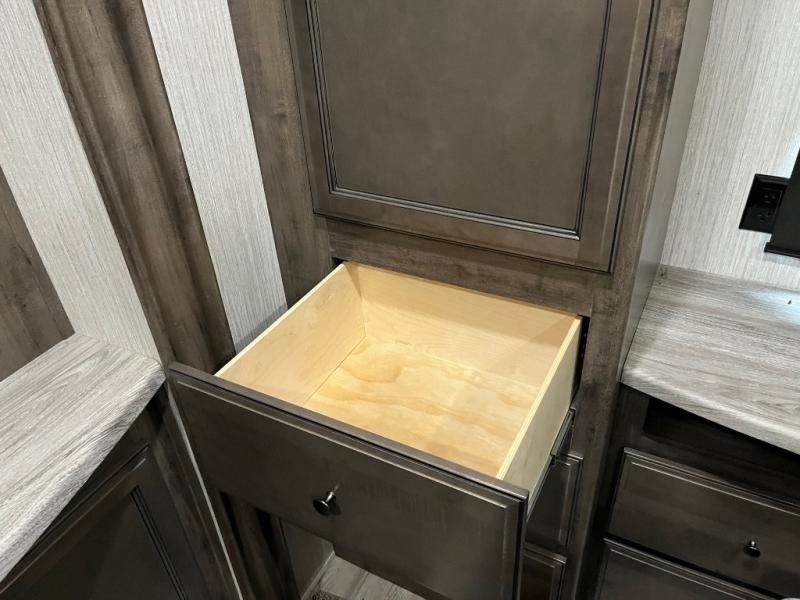 The professional details, outstanding quality, and elegant decor that have been incorporated into each of the Sandpiper fifth wheels by Forest River will absolutely amaze you! Extra large picture windows have been installed throughout the interior so that you can feel connected to the beautiful outdoor scenery from anywhere inside the Sandpiper, and the recessed residential LED lighting will shine brightly and efficiently to illuminate the interior once the day's light has faded. The docking station makes for an easy winterization and the hydraulic front jacks makes it easy to set up once you have arrived at your destination!