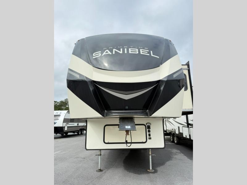 With any Sanibel fifth wheel by Prime Time RV, you will enjoy many intelligent features for luxurious camping or full-time RV living! The Extreme Thermal package allows you to extend your camping season by including heated, enclosed water lines, an enclosed underbelly, a heated pass-through storage, and a heated universal docking center. You can keep the party going with the exterior speakers, the coax TV connection and a 110V outlet, plus USB ports in the basement storage. Each model includes a smart arm electric awning with LED lights, DOT approved deep tint safety glass, and a "E-Z FLEX" rubberized suspension to provide smooth towing on tougher roads. Inside, you will enjoy shaker style interior doors, a Furrion residential cooktop and oven, roller shades throughout, and "Atrium" dinette windows to let sunlight in for an inviting space. Make the smart choice for your next RV. Choose one of these Sanibel fifth wheels today!