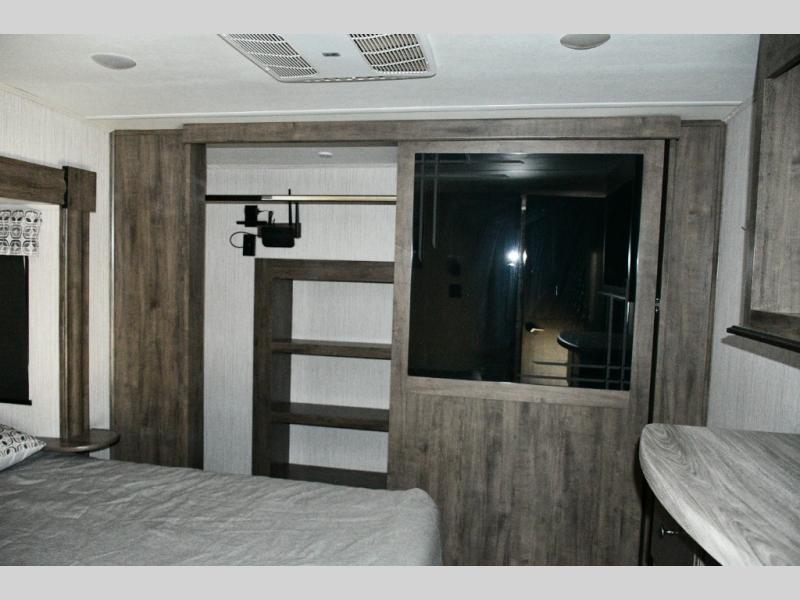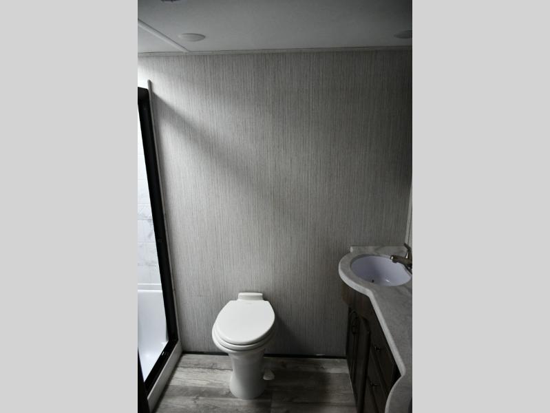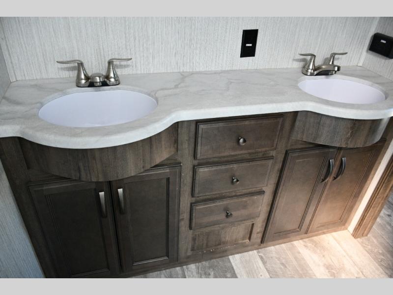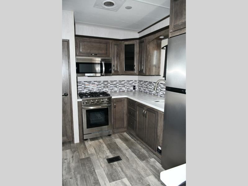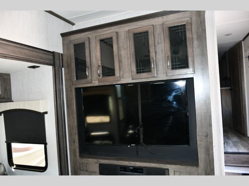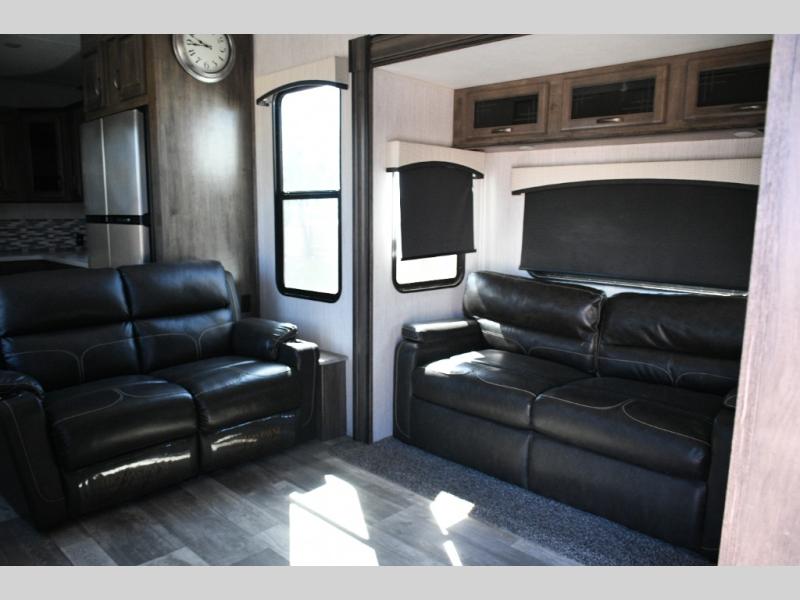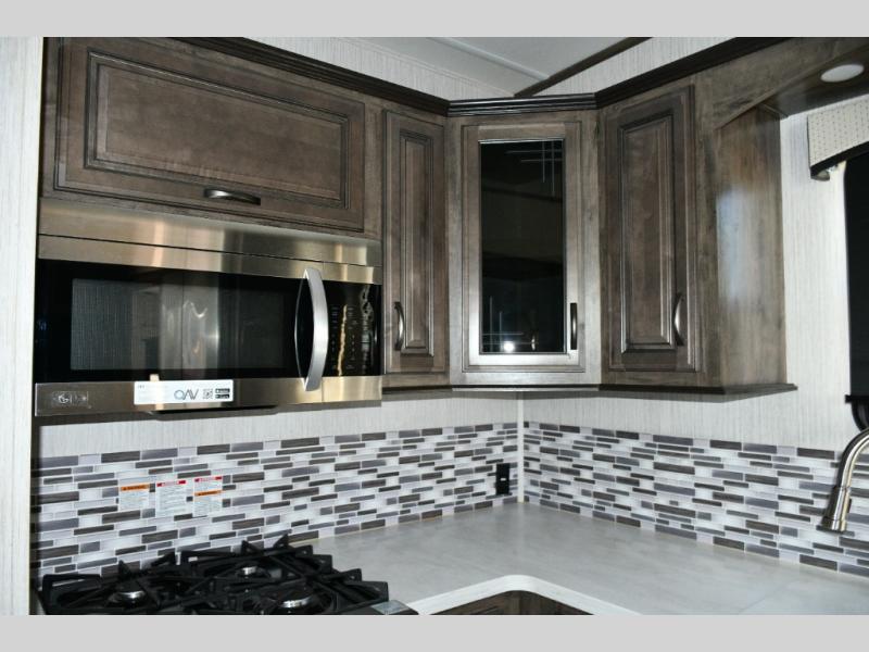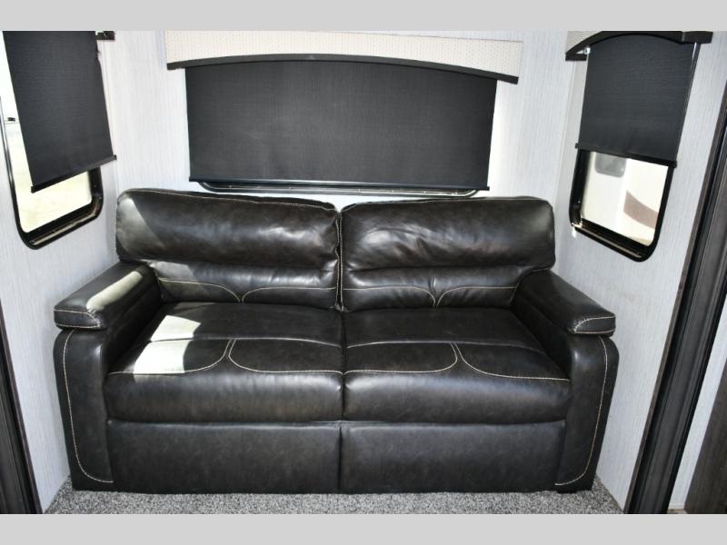 Whether you are hosting friends at the campground or settling in for a longer adventure, this fifth wheel creates a true home-away-from-home experience.