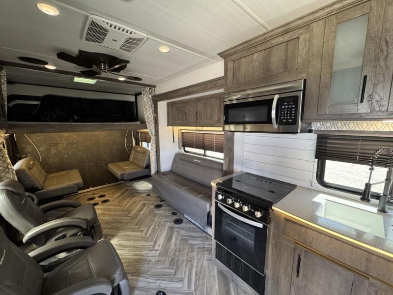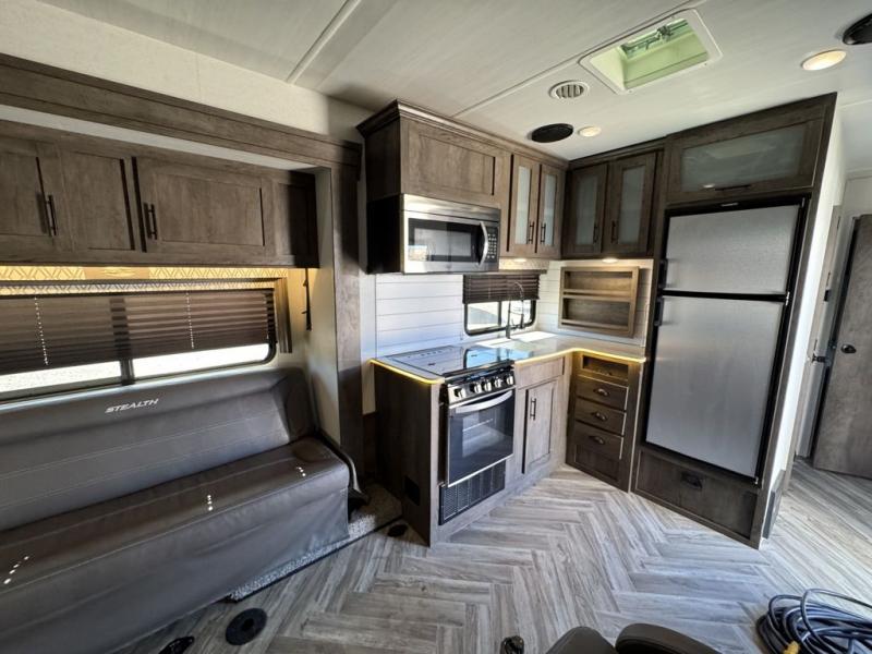 Each one of these Forest River Stealth toy haulers are built with a solid foundation and a 102" wide body construction! The 35 gallon fuel tank will keep your toys filled and ready to hit the trails, plus the black 1,200 lb. tie downs mounted to steel will keep them safe as you travel. These units are filled with luxury from the stainless steel appearance appliances to the pillow top mattress and USB charging ports throughout. The heated and enclosed underbelly and the one-piece seamless PVC roof will protect your unit through all weather conditions. There is also an outside shower with hot and cold water to keep the dirt outside where it belongs. Come find your favorite model today!