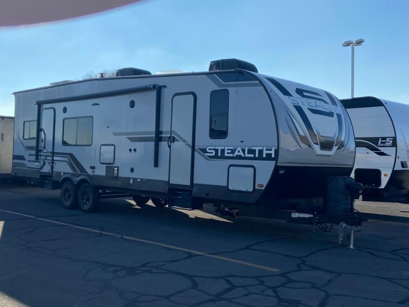 Each one of these Forest River Stealth toy haulers are built with a solid foundation and a 102" wide body construction! The 35 gallon fuel tank will keep your toys filled and ready to hit the trails, plus the black 1,200 lb. tie downs mounted to steel will keep them safe as you travel. These units are filled with luxury from the stainless steel appearance appliances to the pillow top mattress and USB charging ports throughout. The heated and enclosed underbelly and the one-piece seamless PVC roof will protect your unit through all weather conditions. There is also an outside shower with hot and cold water to keep the dirt outside where it belongs. Come find your favorite model today!