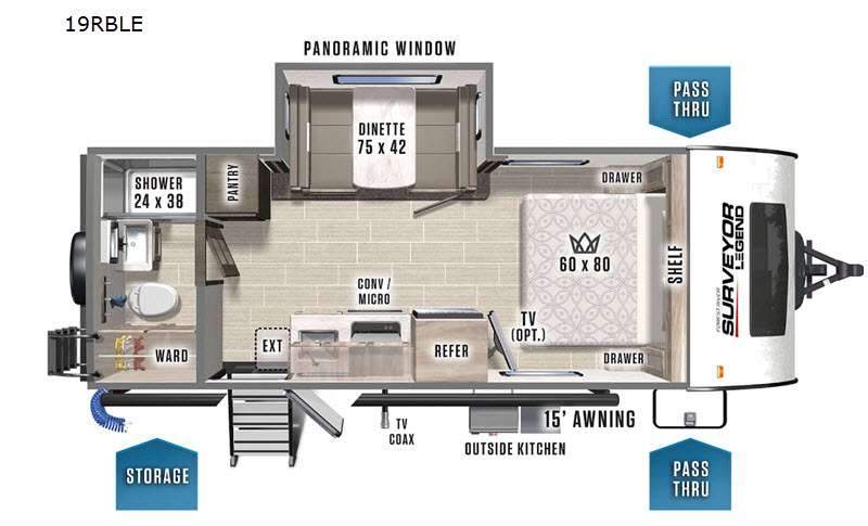 Forest River Surveyor Legend Sub-4,000LB travel trailer 19RBLE highlights: