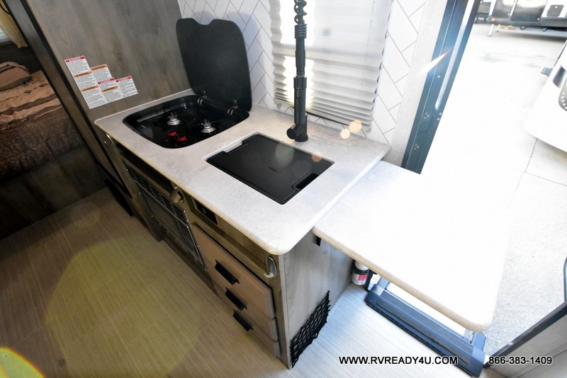 Your family will love this Surveyor Legend Sub-4,000LB travel trailer that can comfortably sleep three each night. Mom and dad will enjoy the residential queen bed at the front of the trailer while the kids crash on the booth dinette once folded down for the night. The single slide provides extra interior space that everyone will appreciate. This unit features a two-burner range to whip up a quick dinner, plus a pantry for your dry goods. After a long hike through the woods, clean up in the full rear bath that includes a wardrobe. This travel trailer also includes an exterior pass-through storage, so don't forget your fishing poles!