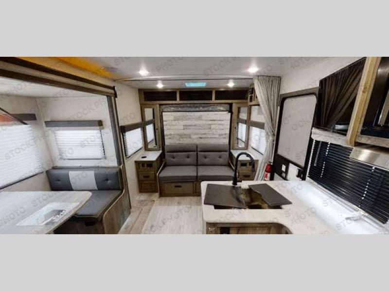 Only the Forest River Surveyor Legend travel trailer can inspire legendary adventures! The gel-coated fiberglass exterior is outfitted with front diamond plate protection, an integrated front windshield, preparations for rooftop solar power and a rear camera, and an adjustable platform step on the main entry. You'll be able to use the exterior LED speakers whenever you want to play music or a podcast, and the designer Shaw linoleum flooring is a quality base that will clean up easily if you track mud indoors. There are vented side windows in the slide outs so that you can bring in some fresh air, and each model is ready for cable/satellite.