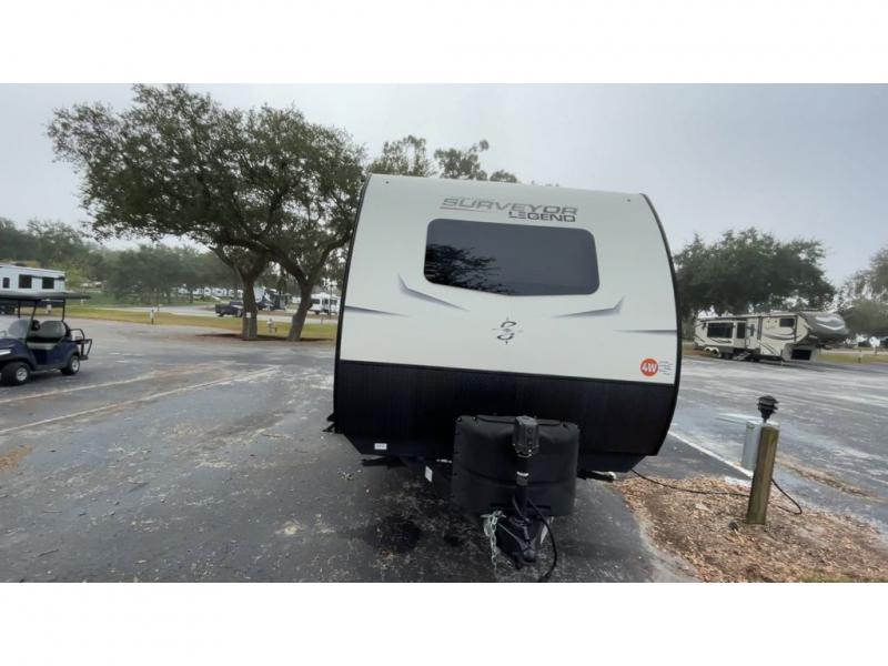 Only the Forest River Surveyor Legend travel trailer can inspire legendary adventures! The gel-coated fiberglass exterior is outfitted with front diamond plate protection, an integrated front windshield, preparations for rooftop solar power and a rear camera, and an adjustable platform step on the main entry. You'll be able to use the exterior LED speakers whenever you want to play music or a podcast, and the designer Shaw linoleum flooring is a quality base that will clean up easily if you track mud indoors. There are vented side windows in the slide outs so that you can bring in some fresh air, and each model is ready for cable/satellite.