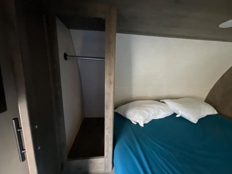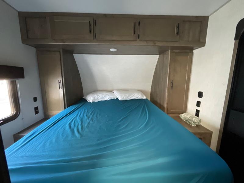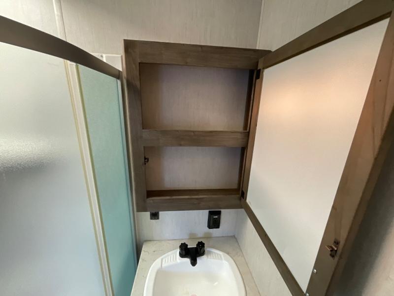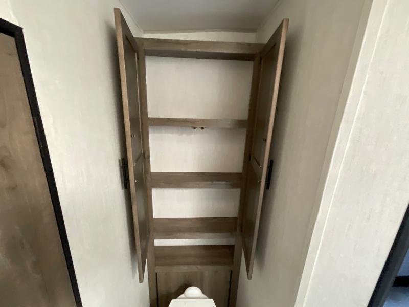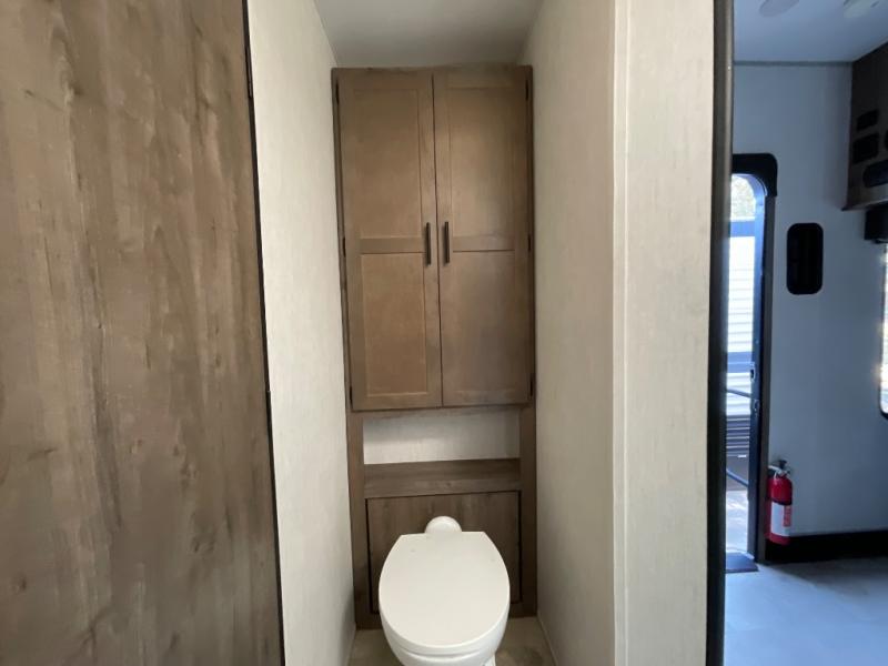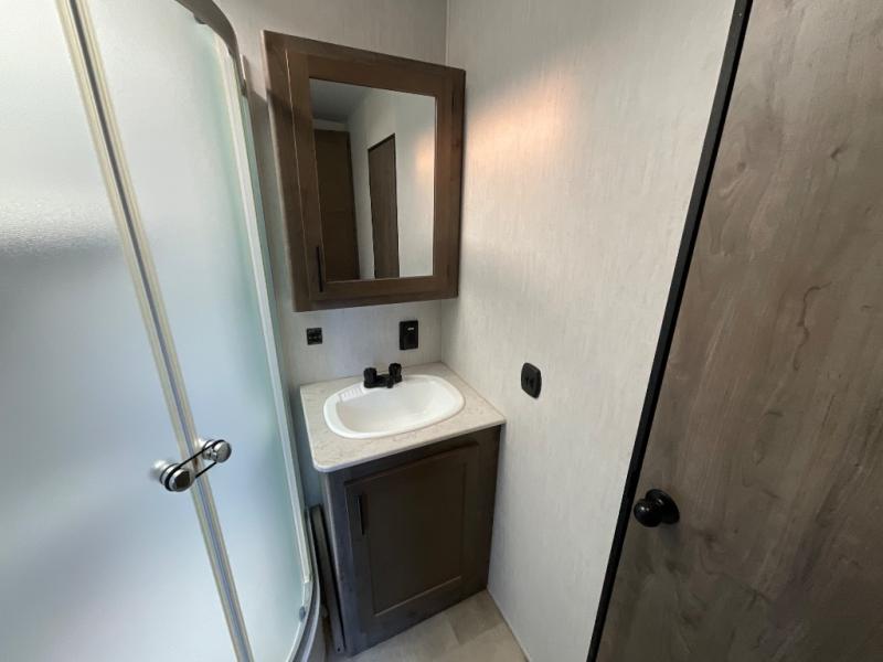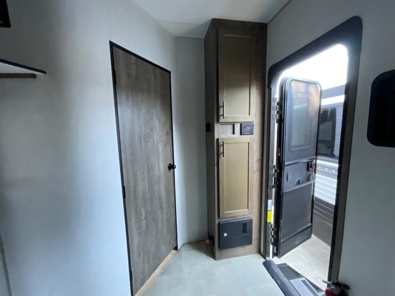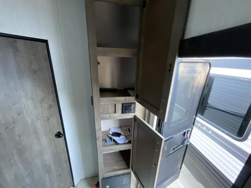 This dual entry toy hauler will keep you happy on every outdoor adventure. Once your dirt bikes are unloaded, relax on the two roll-overs sofas and enjoy lunch before heading out for the day. You can also choose to add two optional lounge chairs for more seating space if needed. The walk-through bath includes a medicine cabinet for your necessities and a linen closet for clean towels, and the front master bedroom includes a Rogue king bed for your comfort.