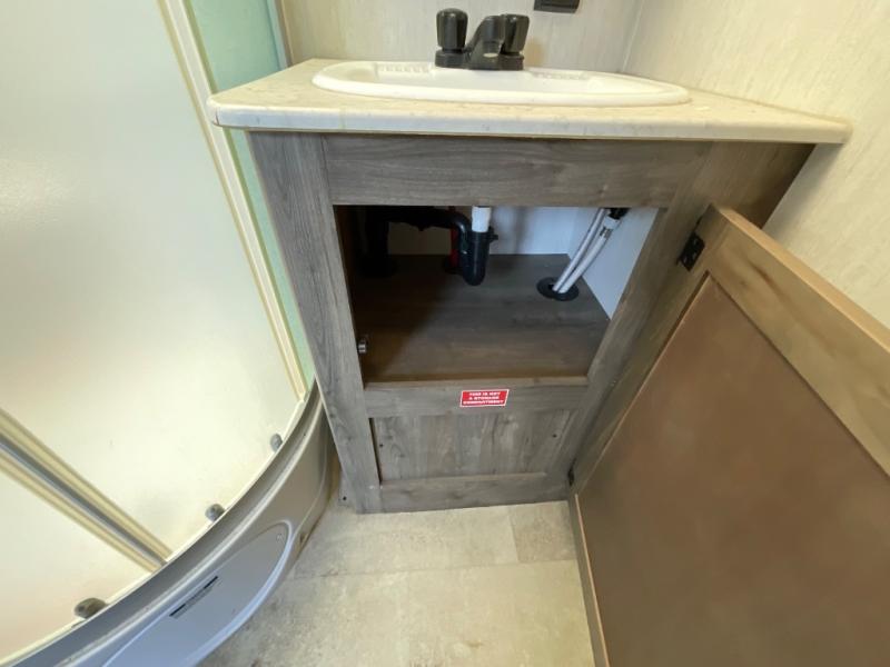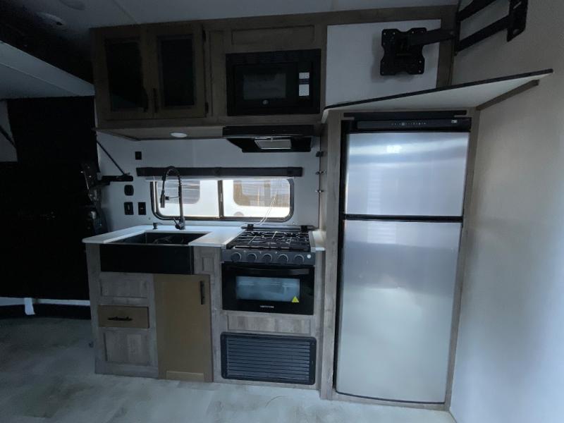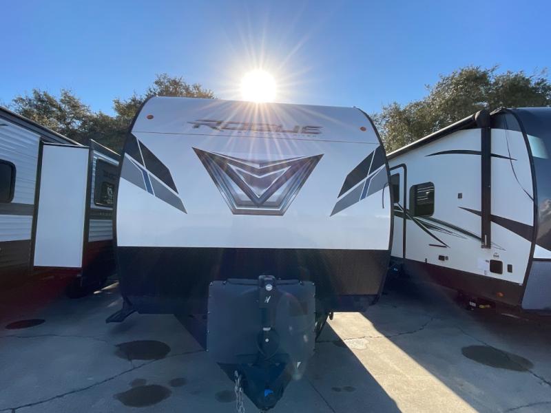 The Vengeance Rogue by Forest River is a budget-friendly toy hauler that you can really get on board with! Some of the features within the Rogue Platinum Package are the zebra shades that will keep light out, a glass shower enclosure, ultracold heated holding tank pads, and much more. There is an outside shower with hot and cold water so you can fill the dogs water bowl or wash the mud from your riding gear, and the enclosed underbelly will allow you to extend your camping season. You will love the look of the residential black stainless steel farm sink, along with the seamless countertops and LED interior lighting with accents.