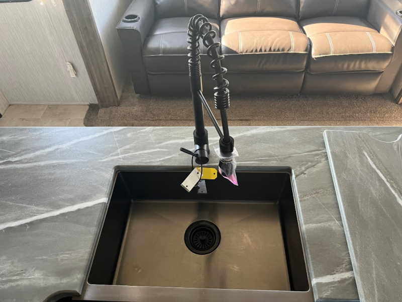 The Vengeance Rogue by Forest River is a budget-friendly toy hauler that you can really get on board with! Some of the features within the Rogue Platinum Package are the zebra shades that will keep light out, a glass shower enclosure, ultracold heated holding tank pads, and much more. There is an outside shower with hot and cold water so you can fill the dogs water bowl or wash the mud from your riding gear, and the enclosed underbelly will allow you to extend your camping season. You will love the look of the residential black stainless steel farm sink, along with the seamless countertops and LED interior lighting with accents.