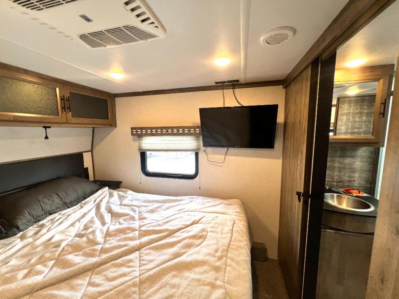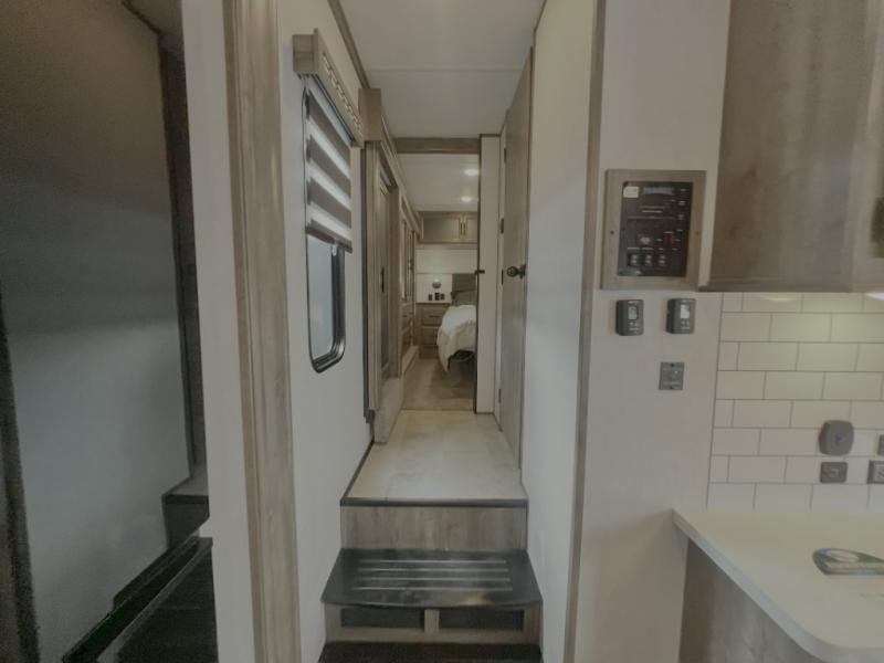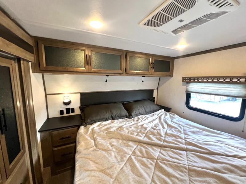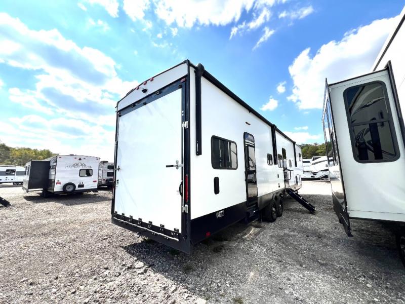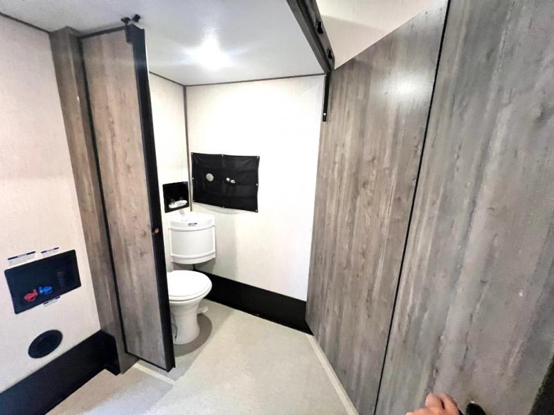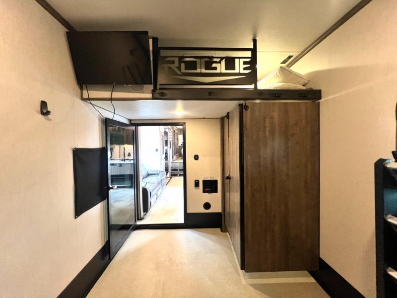 Every one of these Forest River Vengeance Rogue Armored fifth wheel toy haulers come with the features you want most at an affordable price tag! The DUR-A-POXY cargo floor has 5,000 lb. tie downs to ensure your toys will arrive safely without damaging the flooring, plus the 8' ramp door makes it easy to load them. A 15,000 BTU air conditioner will keep you cool even on the hottest summer days. An enclosed and heated underbelly keeps your unit's vitals protected and a central docking station makes life a little easier. The Rogue Armored package comes with a six point leveling system, a comfort plus adjustable powered king bed system, and a ramp door patio system. You can be sure to find one that fits your needs!