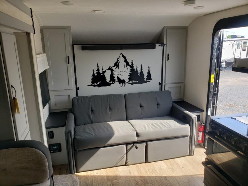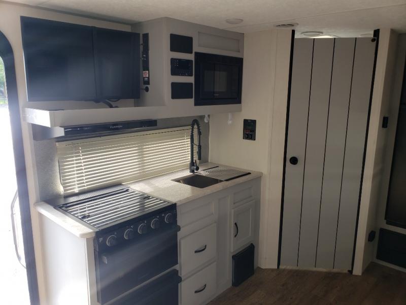 Outside, enjoy the power awning, oversized pass-through storage, and convenient outdoor features that make setup and campsite living effortless. Whether you're boondocking or staying at a full-hookup resort, the 18RB is equipped to deliver comfort, reliability, and easy travel.