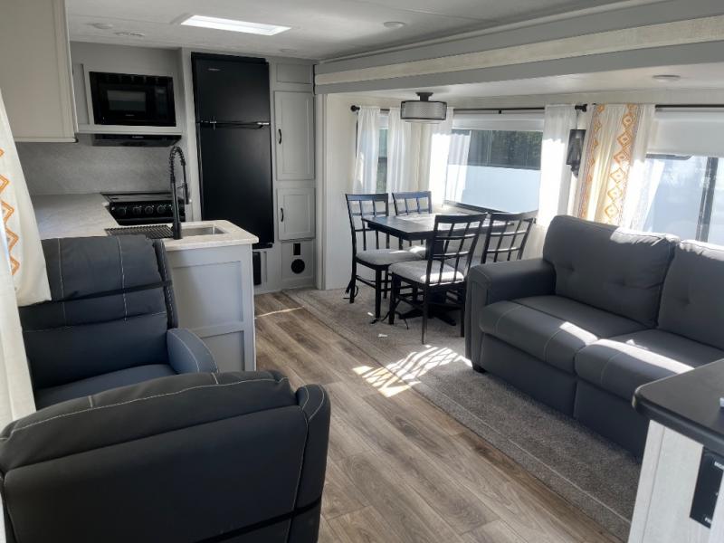 Each Vibe travel trailer by Forest River includes Hyper Lyte construction and a durable laminated "Aluma Frame" for years of use. The heated and enclosed underbelly allows you to extend your camping season, and the LED-lit exterior speakers will keep the party going as you grill outdoors and visit with family. Inside, you'll find LED lights to keep everything bright and open, a Bluetooth stereo, roller shades for your privacy, and many more amenities per region. These models also include cable and satellite prep and a digital TV antenna with a booster so you can stay connected to the outside world if you choose. Make the easy choice and choose a Vibe travel trailer today!
