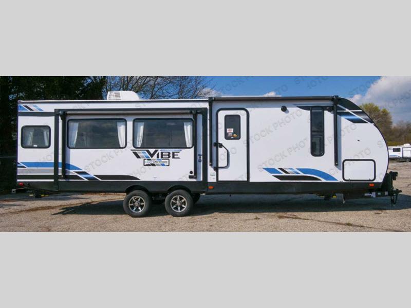 Each Vibe travel trailer by Forest River includes Hyper Lyte construction and a durable laminated "Aluma Frame" for years of use. The heated and enclosed underbelly allows you to extend your camping season, and the LED-lit exterior speakers will keep the party going as you grill outdoors and visit with family. Inside, you'll find LED lights to keep everything bright and open, a Bluetooth stereo, roller shades for your privacy, and many more amenities per region. These models also include cable and satellite prep and a digital TV antenna with a booster so you can stay connected to the outside world if you choose. Make the easy choice and choose a Vibe travel trailer today!