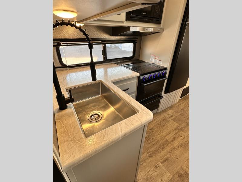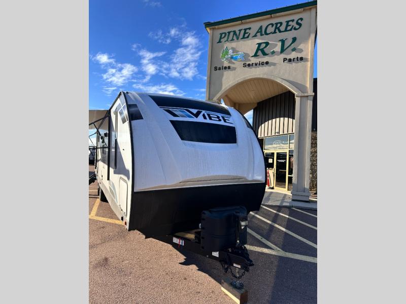 Each Vibe travel trailer by Forest River includes Hyper Lyte construction and a durable laminated "Aluma Frame" for years of use. The heated and enclosed underbelly allows you to extend your camping season, and the LED-lit exterior speakers will keep the party going as you grill outdoors and visit with family. Inside, you'll find LED lights to keep everything bright and open, a Bluetooth stereo, roller shades for your privacy, and many more amenities per region. These models also include cable and satellite prep and a digital TV antenna with a booster so you can stay connected to the outside world if you choose. Make the easy choice and choose a Vibe travel trailer today!