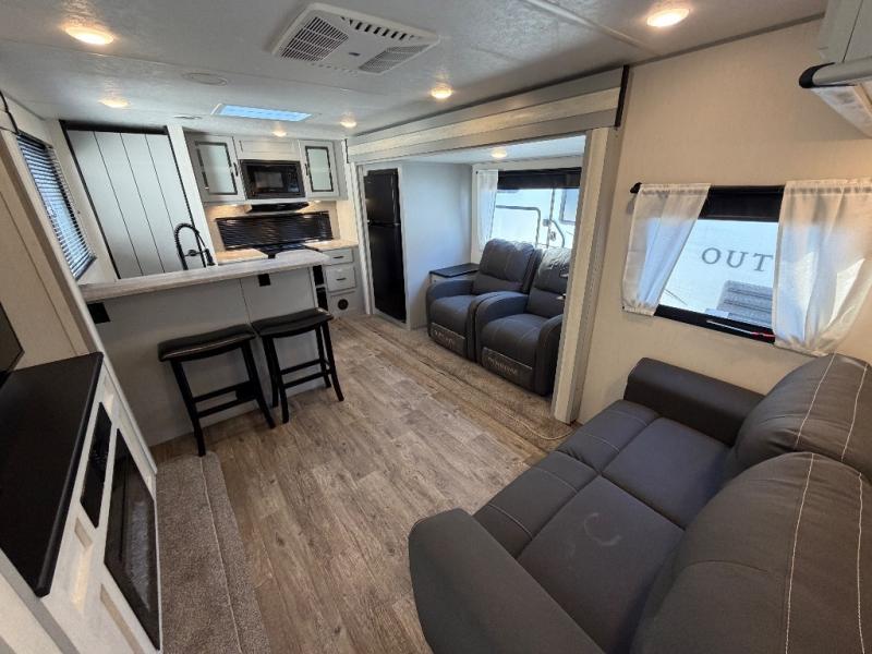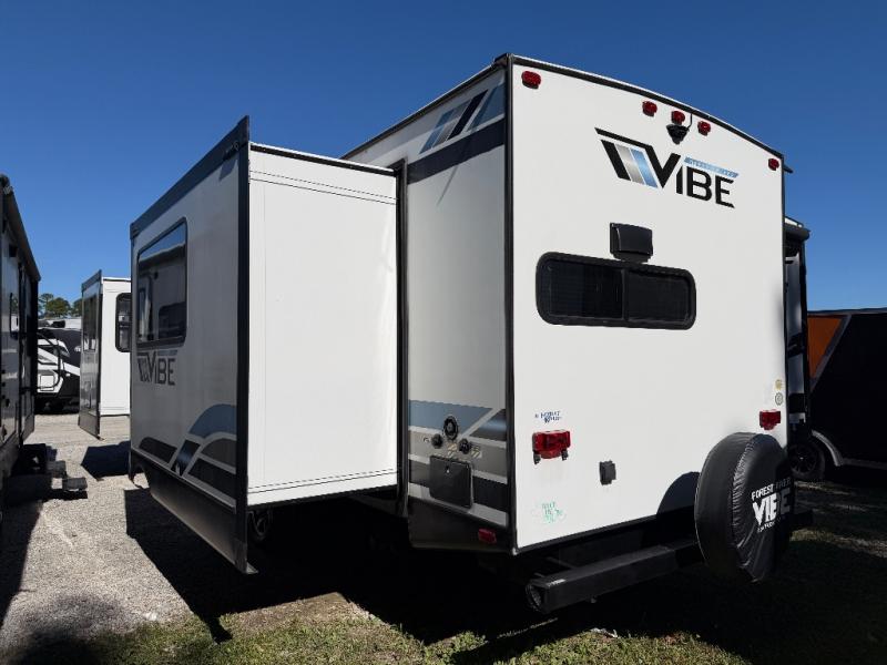 The Forest River Vibe 31ML travel trailer combines spacious living, private sleeping areas, and a chef-inspired rear kitchen for the ultimate camping experience. With durable construction, modern conveniences, and outdoor entertainment options, this unit is ideal for families and extended adventures. Enjoy comfort and versatility wherever your travels take you.