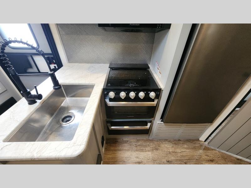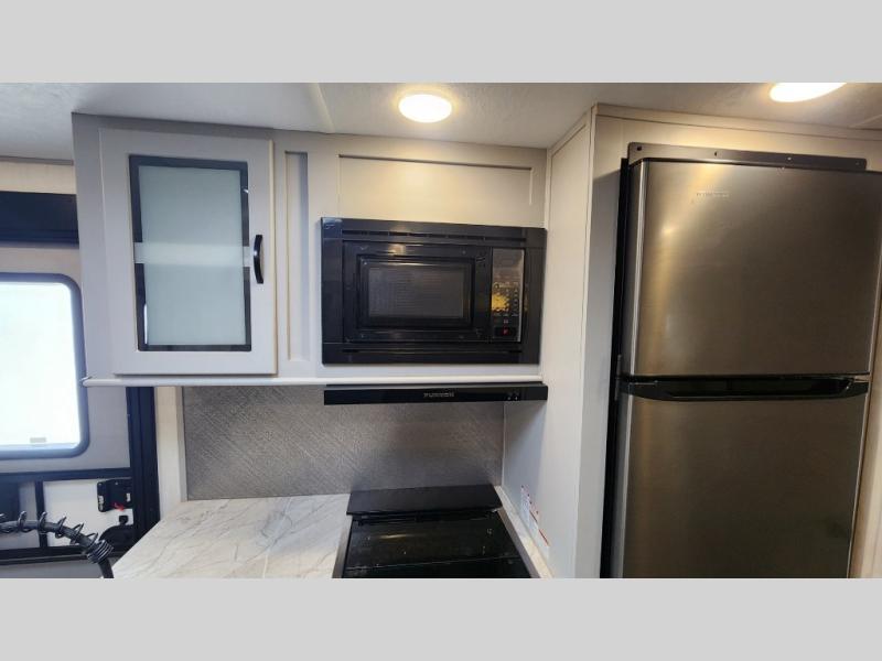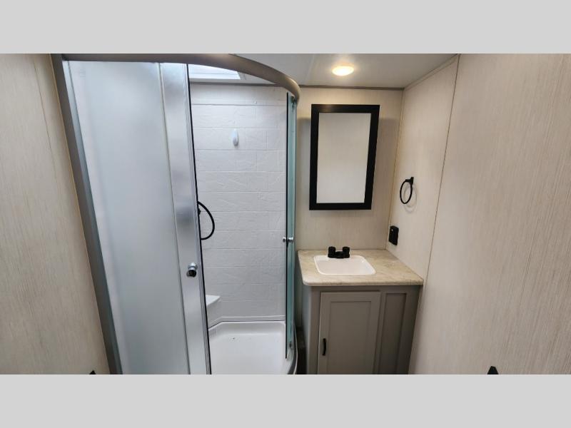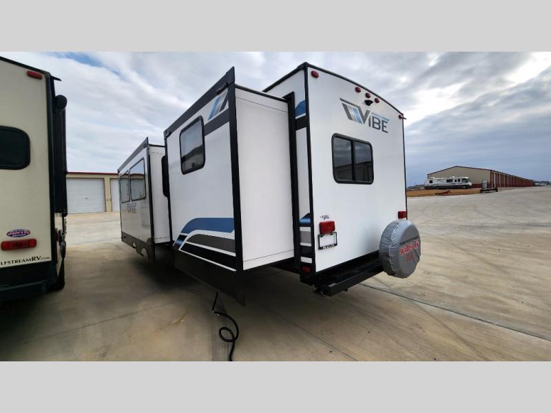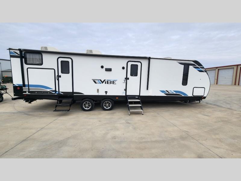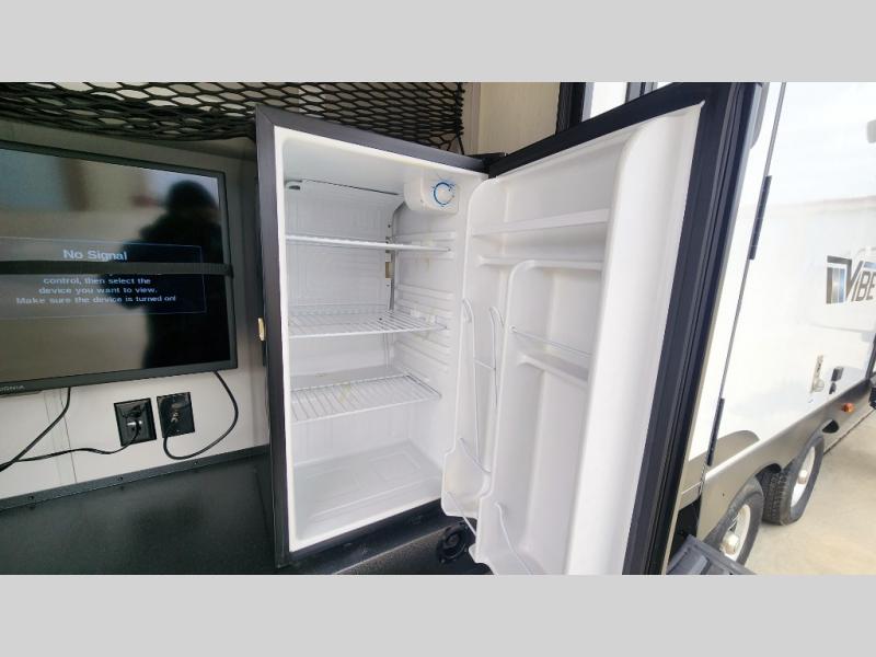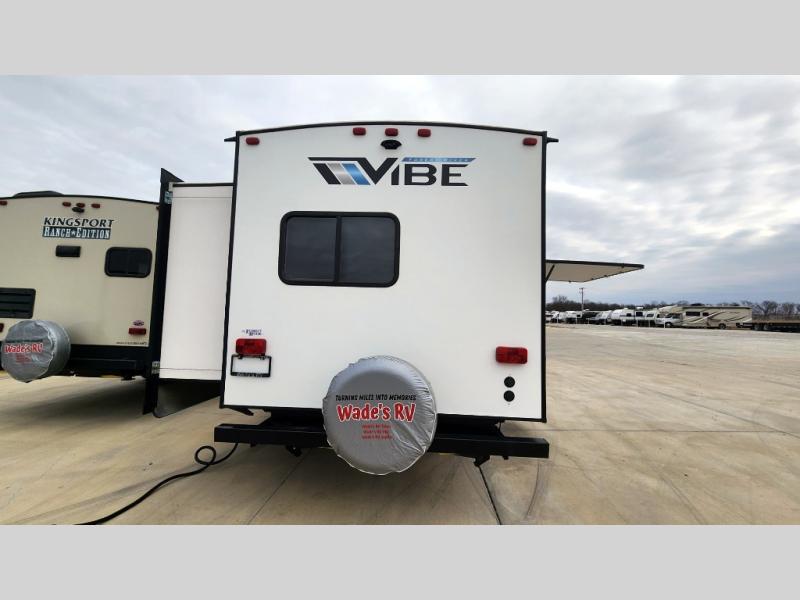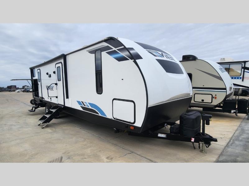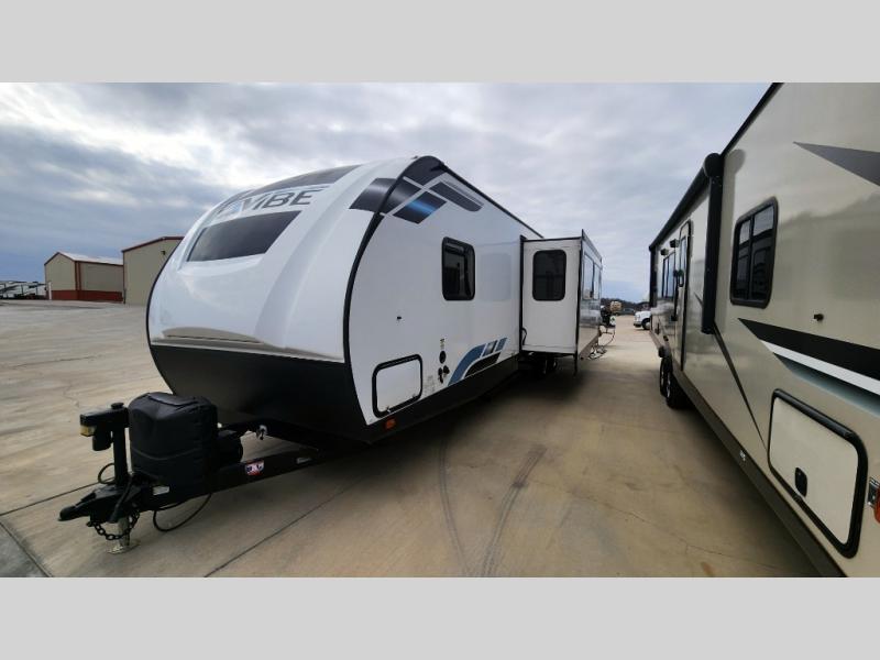 Each Vibe travel trailer by Forest River includes Hyper Lyte construction and a durable laminated "Aluma Frame" for years of use. The heated and enclosed underbelly allows you to extend your camping season, and the LED-lit exterior speakers will keep the party going as you grill outdoors and visit with family. Inside, you'll find LED lights to keep everything bright and open, a Bluetooth stereo, roller shades for your privacy, and many more amenities per region. These models also include cable and satellite prep and a digital TV antenna with a booster so you can stay connected to the outside world if you choose. Make the easy choice and choose a Vibe travel trailer today!