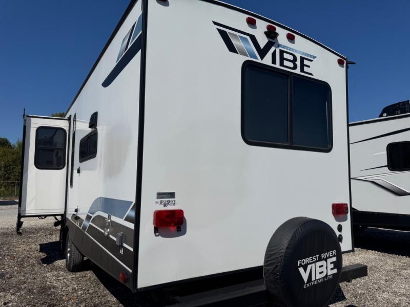 Each Vibe travel trailer by Forest River includes Hyper Lyte construction and a durable laminated "Aluma Frame" for years of use. The heated and enclosed underbelly allows you to extend your camping season, and the LED-lit exterior speakers will keep the party going as you grill outdoors and visit with family. Inside, you'll find LED lights to keep everything bright and open, a Bluetooth stereo, roller shades for your privacy, and many more amenities per region. These models also include cable and satellite prep and a digital TV antenna with a booster so you can stay connected to the outside world if you choose. Make the easy choice and choose a Vibe travel trailer today!