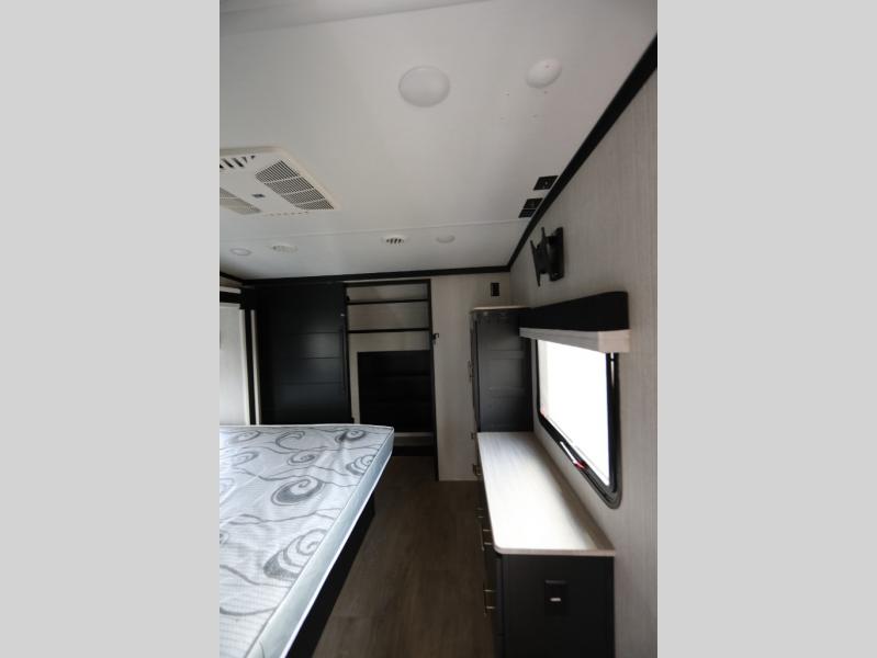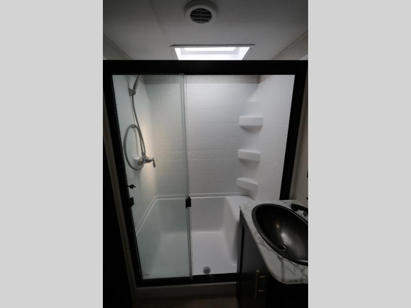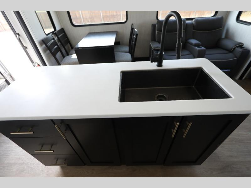 With each Wildcat fifth wheel by Forest River you will appreciate the Road Armor suspension kit with Dexter axles for smooth towing on tougher roads, and a durable construction that includes a Dicor Tufflex PVC roof membrane. The high-density block foam insulation in the sidewalls, along with the residential and thermofoil insulation in the floor and roof help to extend your camping season for year around fun. The exterior includes many convenient features such as, a full pass-through storage with forced air heat, a docking station with an outdoor shower, plus a power awning with LED lights. There are even three models with dual power awnings for maximum shade and comfort. Inside you will enjoy solid surface countertops, a 2-IN-1 range and oven, modern black and white interior decor, plus UBS ports on each side of the bed, as well as a cellphone, CPAP, and tablet station!