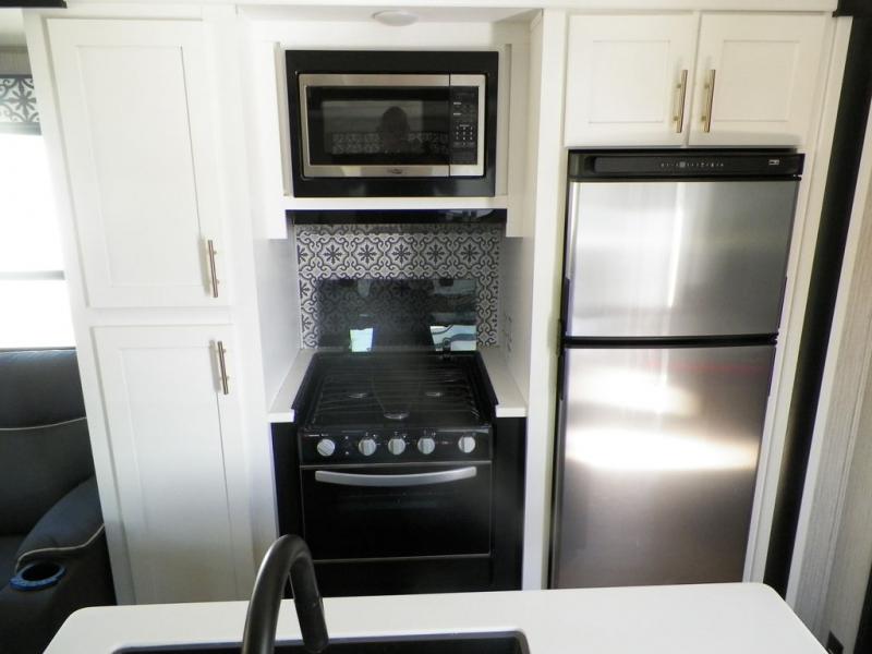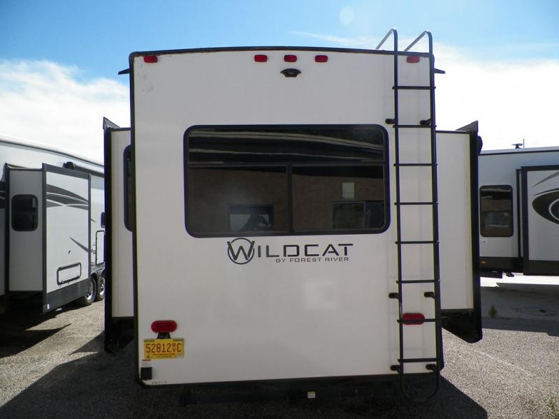 With each Wildcat fifth wheel by Forest River you will appreciate the Road Armor suspension kit with Dexter axles for smooth towing on tougher roads, and a durable construction that includes a Dicor Tufflex PVC roof membrane. The high-density block foam insulation in the sidewalls, along with the residential and thermofoil insulation in the floor and roof help to extend your camping season for year around fun. The exterior includes many convenient features such as, a full pass-through storage with forced air heat, a docking station with an outdoor shower, plus a power awning with LED lights. There are even three models with dual power awnings for maximum shade and comfort. Inside you will enjoy solid surface countertops, a 2-IN-1 range and oven, modern black and white interior decor, plus UBS ports on each side of the bed, as well as a cellphone, CPAP, and tablet station!