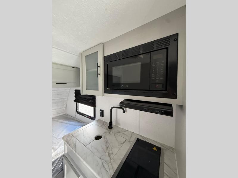 The Forest River Wildwood FSX travel trailer and toy hauler comes with a Best-In-Class Package that truly is the best! Some of the features you'll find in this package are the enclosed Accessibelly, the large-capacity 11-cubic foot refrigerator, the seamless countertops, the outside hot/cold shower, the power awning with adjustable legs and LED lights, and the preparation for Wi-Fi. You'll also notice that the Wildwood FSX provides you with exceptional views of your surroundings with its largest-in-class opening panoramic windows, and the herringbone pattern luxury extra-thick vinyl flooring is an excellent base that will be easy to keep clean. Some other notable features are the TUFFCOAT scratch-resistant exterior paint, the tablet-compatible USB ports, and the residential high-rise kitchen faucet.