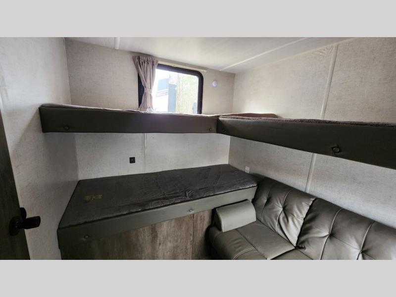 “Used Camper. New Possibilities.” This Unit Features a Private Bunkhouse; Private Front Bedroom; U-Shaped Dinette; Fireplace; Panoramic Windows; Large Slide; Pass-Through Storage!