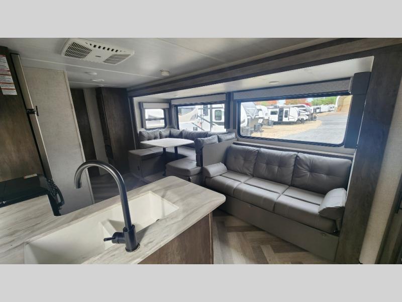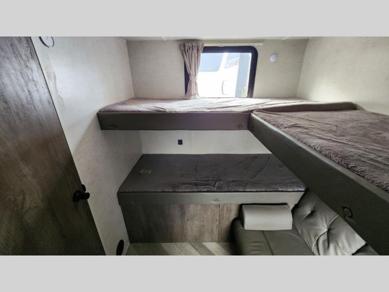 This bunkhouse travel trailer is a favorite among families thanks to its private rear bunkroom, spacious Versa Lounge, and a front queen bedroom. With sleeping space for up to 10 and a dry weight under 6,200 lbs, it’s perfect for half-ton trucks and weekend warriors who don’t want to sacrifice comfort for towability.
