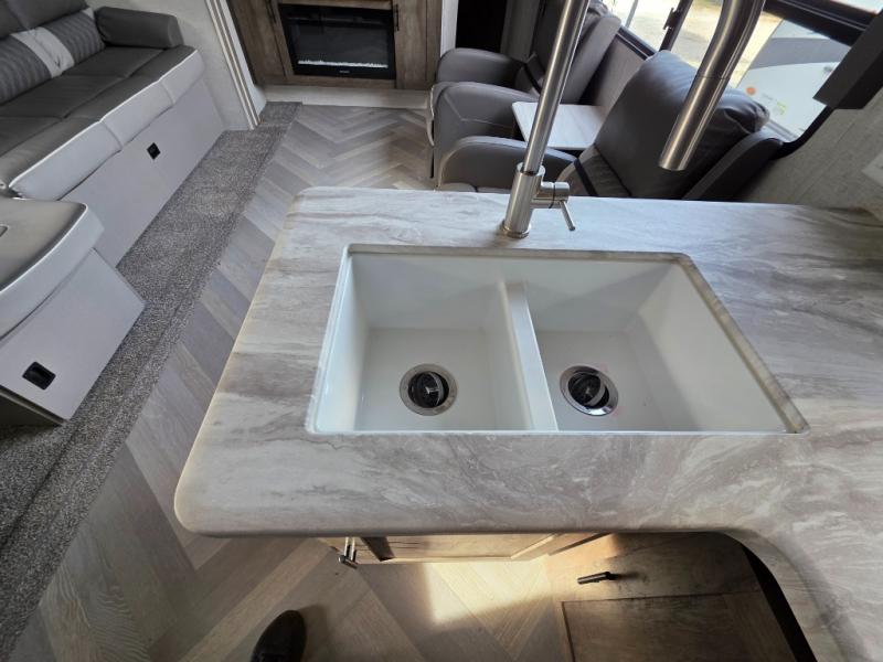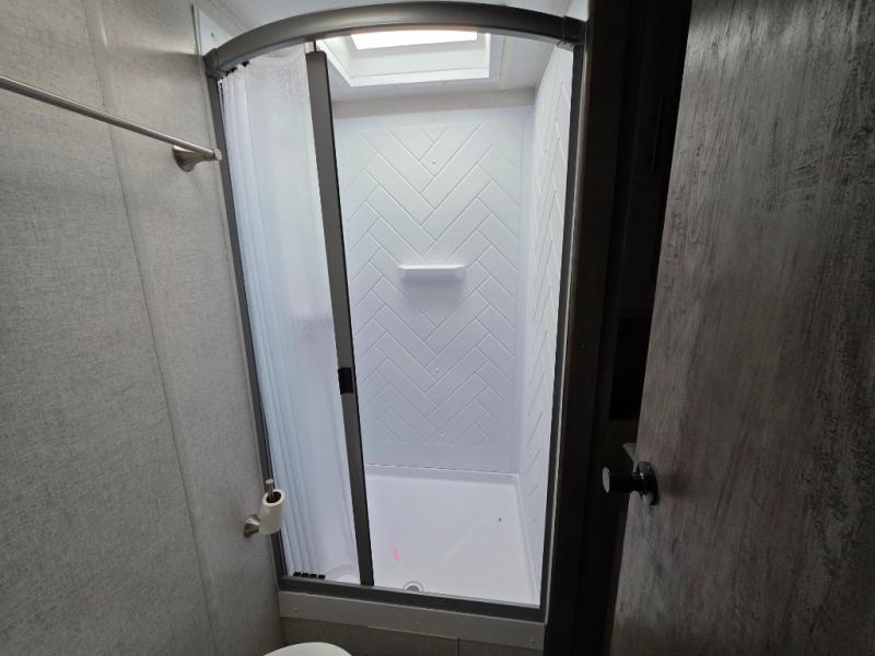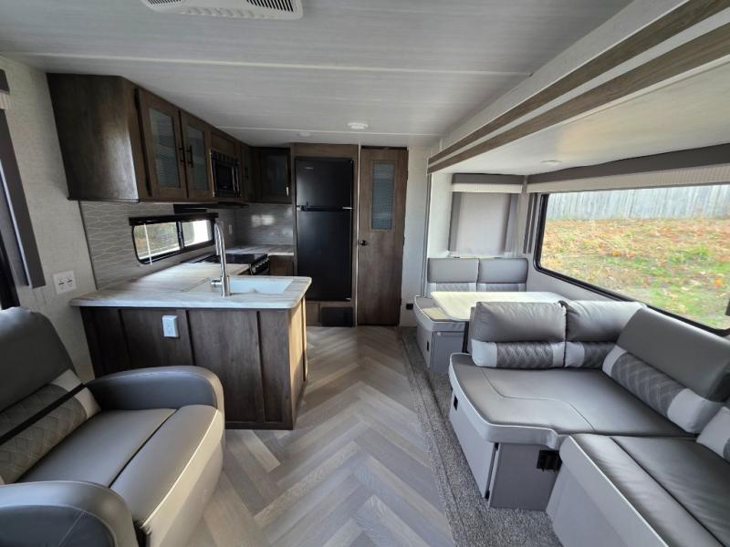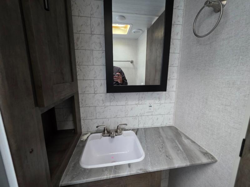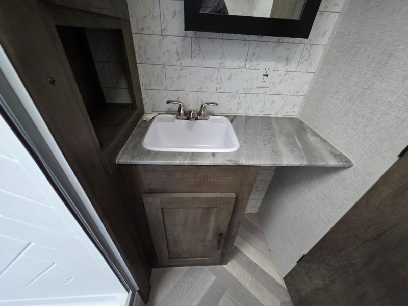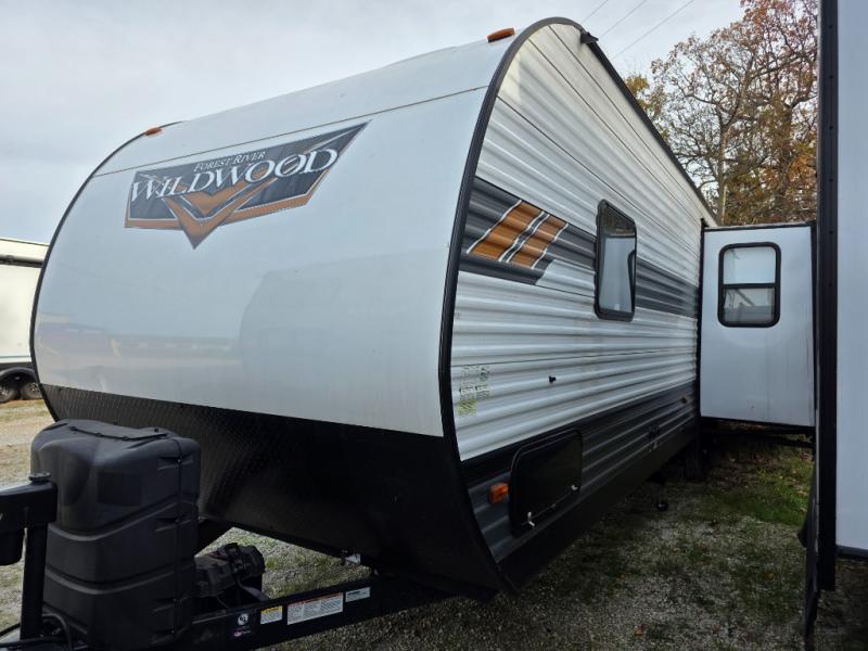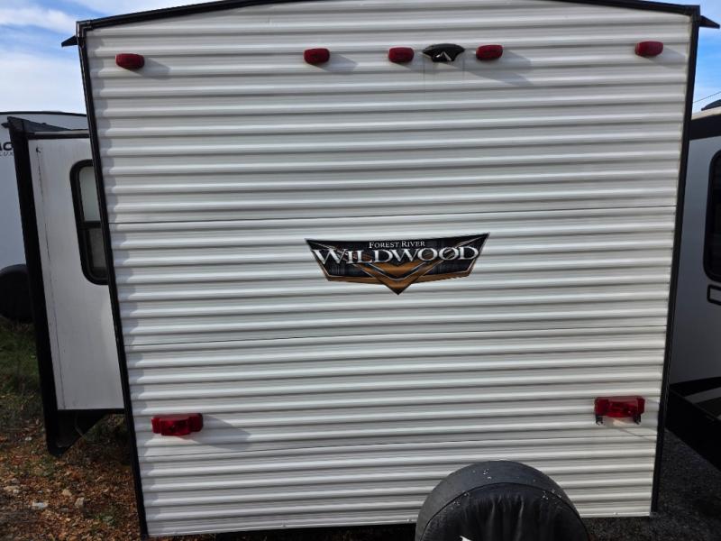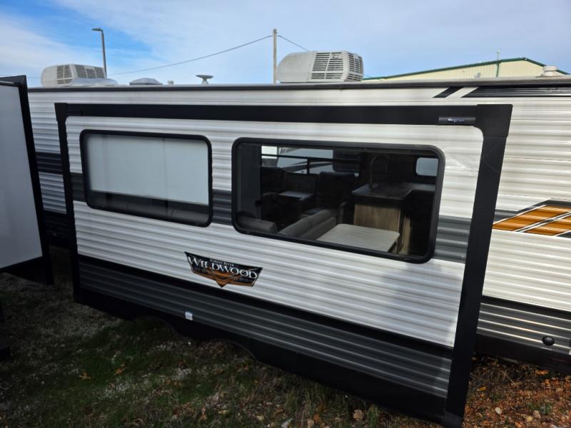 Forest River offers you the highest quality and the best components in its Wildwood travel trailer! The fully walkable one-piece roof is ultra reliable, and the rest of the construction is just as dependable with the powder-coated I-beam frame, cambered chassis, R-7 fiberglass insulation, nitrogen-filled tires, and triple-seal slide-out system. The Wildwood is not only full of quality, but it is also full of style with its herringbone luxury vinyl flooring, shiplap wall board, upgraded designer furniture, high-gloss exterior metal, and seamless countertops. The Wildwood also comes with some extra features that will make your life more comfortable, like the exterior speakers with blue LED light, the tablet-compatible USB ports, the residential vanity with shower caddy, and true stabilizer jacks with JT's Strong Arm.
